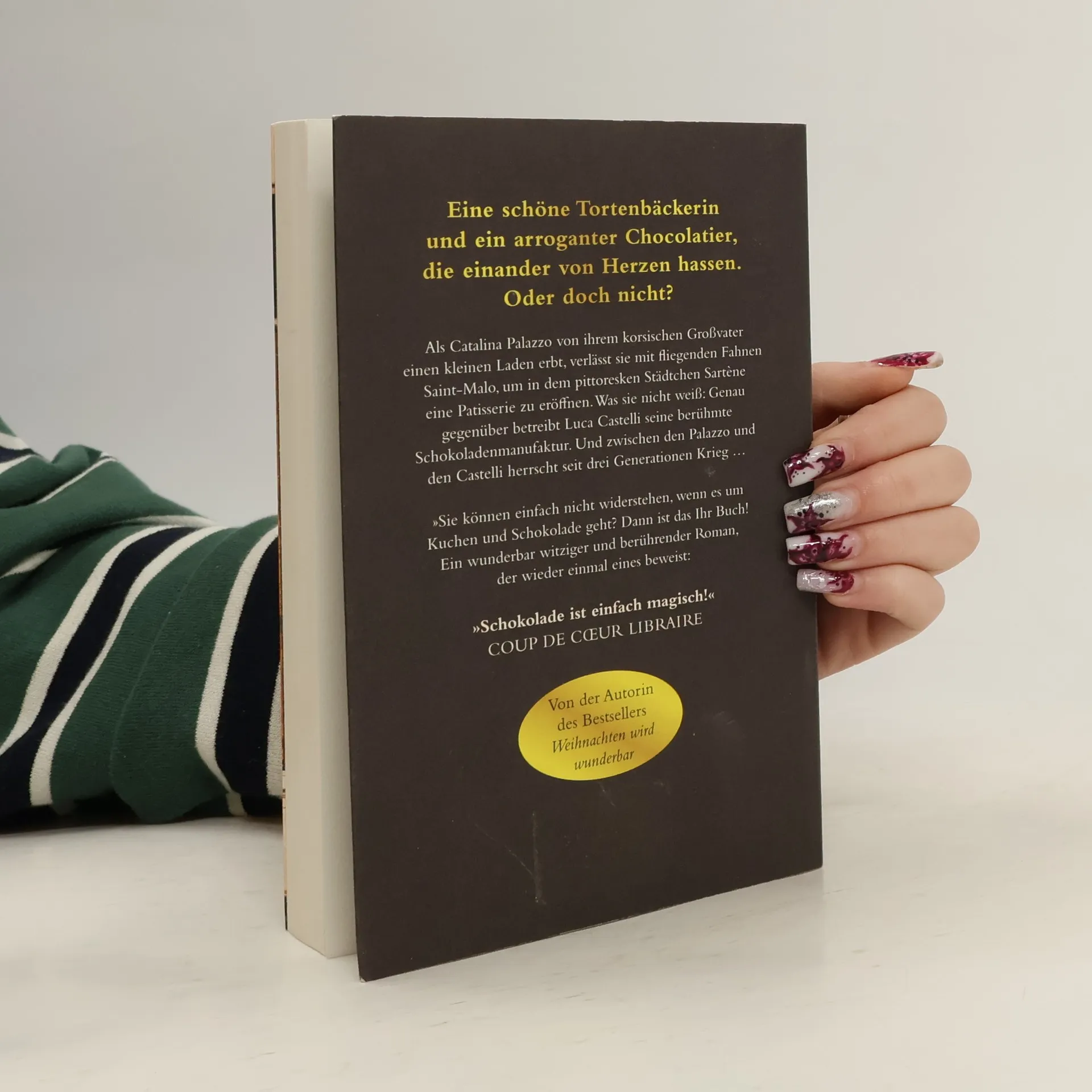 Seit sie denken kann, ist das Backen von Kuchen und Torten die große Leidenschaft der Patissière Catalina Palazzo. Die junge Frau stammt eigentlich aus Korsika, ist aber als kleines Mädchen mit ihrer Mutter in die Bretagne gezogen und hat seither kaum Kontakt zu ihren Großeltern gehabt. Das ändert sich, als ihre Mutter stirbt, ihre große Liebe sie betrügt und sie, als alles den Bach herunterzugehen droht, ein hübsches Ladenlokal und etwas Geld von ihrem korsischen Großvater erbt. Es ist wie ein Wunder zur rechten Zeit. Catalina beschließt ihr altes Leben hinter sich zu lassen und in dem Ort ihrer Kindheit ein neues Zuhause zu finden. Mit viel Liebe und Geschick macht sie aus dem alten Ladenlokal eine zauberhafte Patisserie. Keiner backt köstlichere Kuchen und Torten als sie, doch die Kundschaft bleibt seltsamerweise aus, während in der kleinen Schokoladenmanufaktur gegenüber die Leute Schlange stehen. Der gutaussehende, aber eher menschenfeindliche Luca Castelli ist einer der berühmtesten Chocolatiers Frankreichs. In der »Zuckerbäckerin von gegenüber«, wie er Catalina despektierlich nennt, wittert er sofort Konkurrenz. Nach jahrzehntelanger Familienfehde wird Catalinas Patisserie als Provokation empfunden, man ruft zum Boykott auf. Doch so schnell gibt Catalina sich nicht geschlagen. Sie wird es diesem arroganten Chocolatier schon zeigen ...