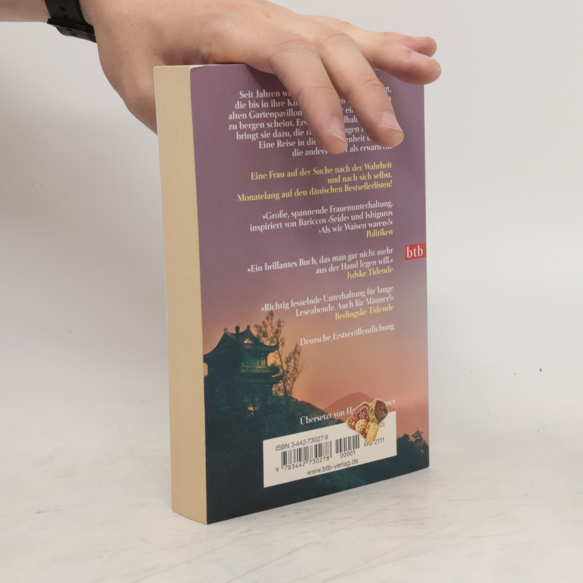 Nach der Trennung von ihrem Freund Henrik will die 33-jährige Kit das Weihnachtsfest bei ihren Eltern verbringen. Besonders ihrem Vater ist sie sehr zugetan. Doch dann kommt alles anders als gedacht: Erik Bennet erleidet einen Herzinfarkt, kurz nachdem er eine rätselhafte Postkarte mit chinesischen Schriftzeichen erhielt. Kit beschließt, der Sache nachzugehen. Vielleicht findet sie auf diese Weise auch eine Erklärung für all die Alpträume, die sie seit Jahren plagen und die sie nicht zu deuten weiß. Alpträume, die mit ihrer Kindheit in Hongkong zu tun haben und einem alten Gartenpavillon, der ein Geheimnis zu bergen scheint ... "Große, spannende Frauenunterhaltung, inspiriert von Bariccos 'Seide' und Ishiguros 'Als wir Waisen waren'." POLITIKEN "Egholms spannenden, brillanten Roman kann man nur schwer aus der Hand legen." Jydske Tidende