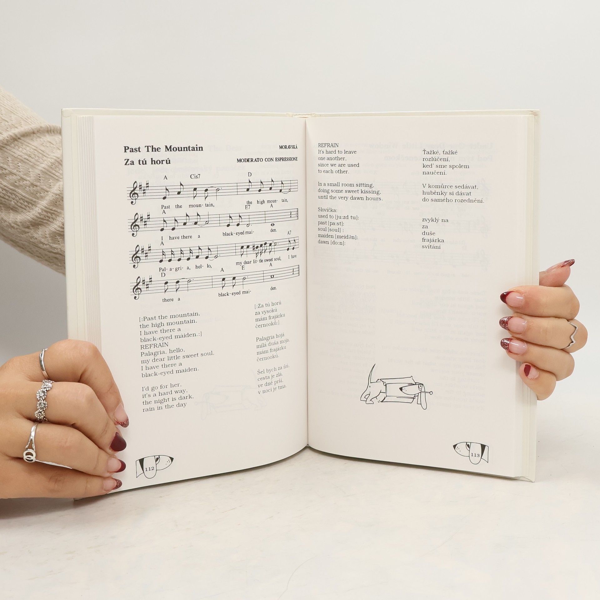Tato kniha, která obsahuje 79 českých, moravských a slovenských písniček s anglickým překladem je určena pro české a slovenské studenty anglického jazyka. Nabízí jim zábavu a schůdnou cestu při učení anglické výslovnosti - fonetickými popisy, a skladby jazyka - hudebními frázemi - tedy prostředky, které jsou jim známé - jejich národní hudbou.