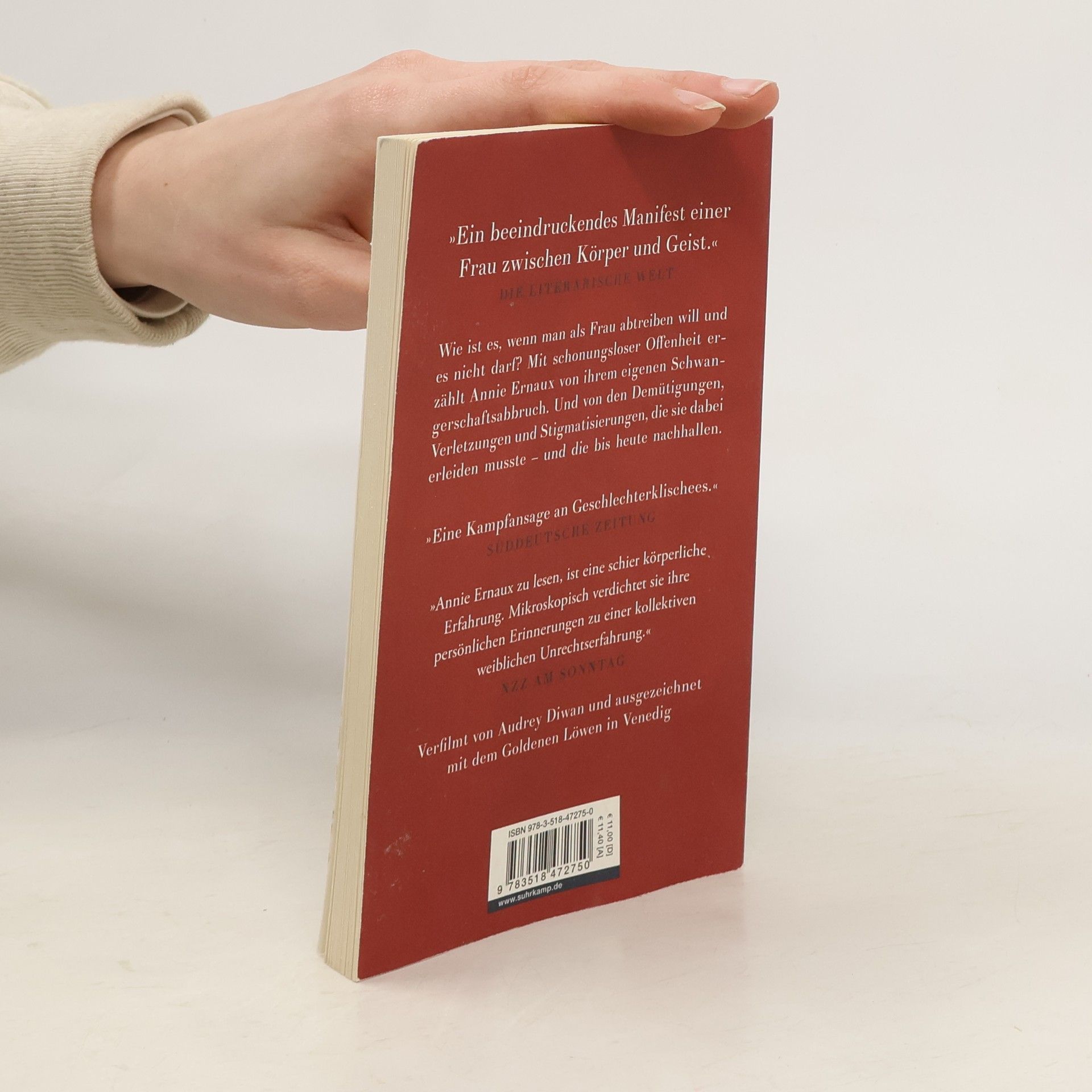 Nobelpreis für Literatur 2022 Oktober 1963: Die 23-jährige Annie entdeckt, dass sie schwanger ist. Die Studentin aus bescheidenen Verhältnissen weiß: Wenn sie ein uneheliches Kind zur Welt bringt, wird sie alles verlieren. Das hart erkämpfte Universitätsstudium, die Hoffnung, dem engen, prekären Milieu der Eltern zu entkommen. Sie ist entschlossen, die Schwangerschaft zu beenden, aber im Frankreich der 1960er Jahre ist Abtreiben illegal, und so beginnt für die junge Frau ein Spießrutenlauf, der sie von der Praxis eines überheblichen Arztes ins Hinterzimmer einer zweifelhaften Engelmacherin führt und schließlich in der Notaufnahme endet. Voller Scham versucht Annie, die Kontrolle über ihr Leben zurückzugewinnen, und begegnet dabei überall erschreckender Gleichgültigkeit. Wie ist es, wenn man als Frau abtreiben will und es nicht darf? Mit schonungsloser Offenheit erzählt Annie Ernaux von ihrem eigenen Schwangerschaftsabbruch. Und von den Demütigungen, Verletzungen und Stigmatisierungen, die sie dabei erleiden musste – und die bis heute nachhallen.
