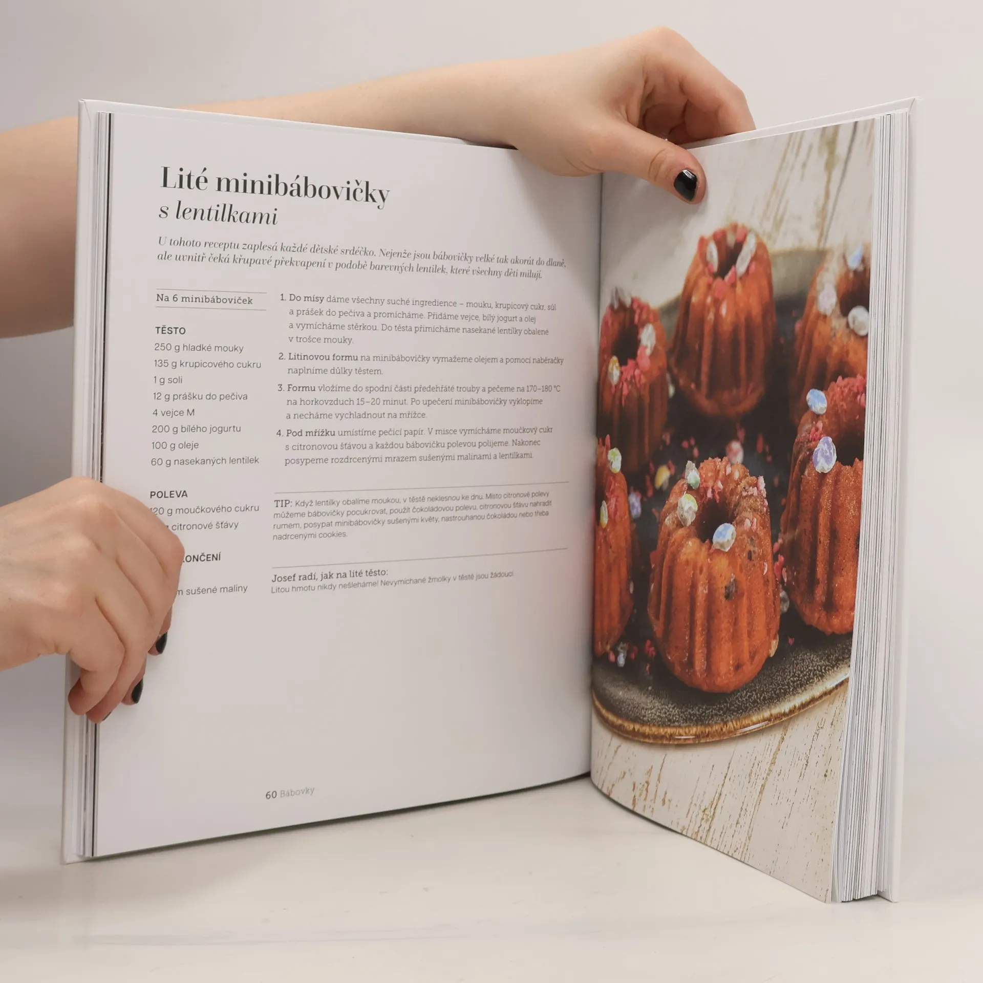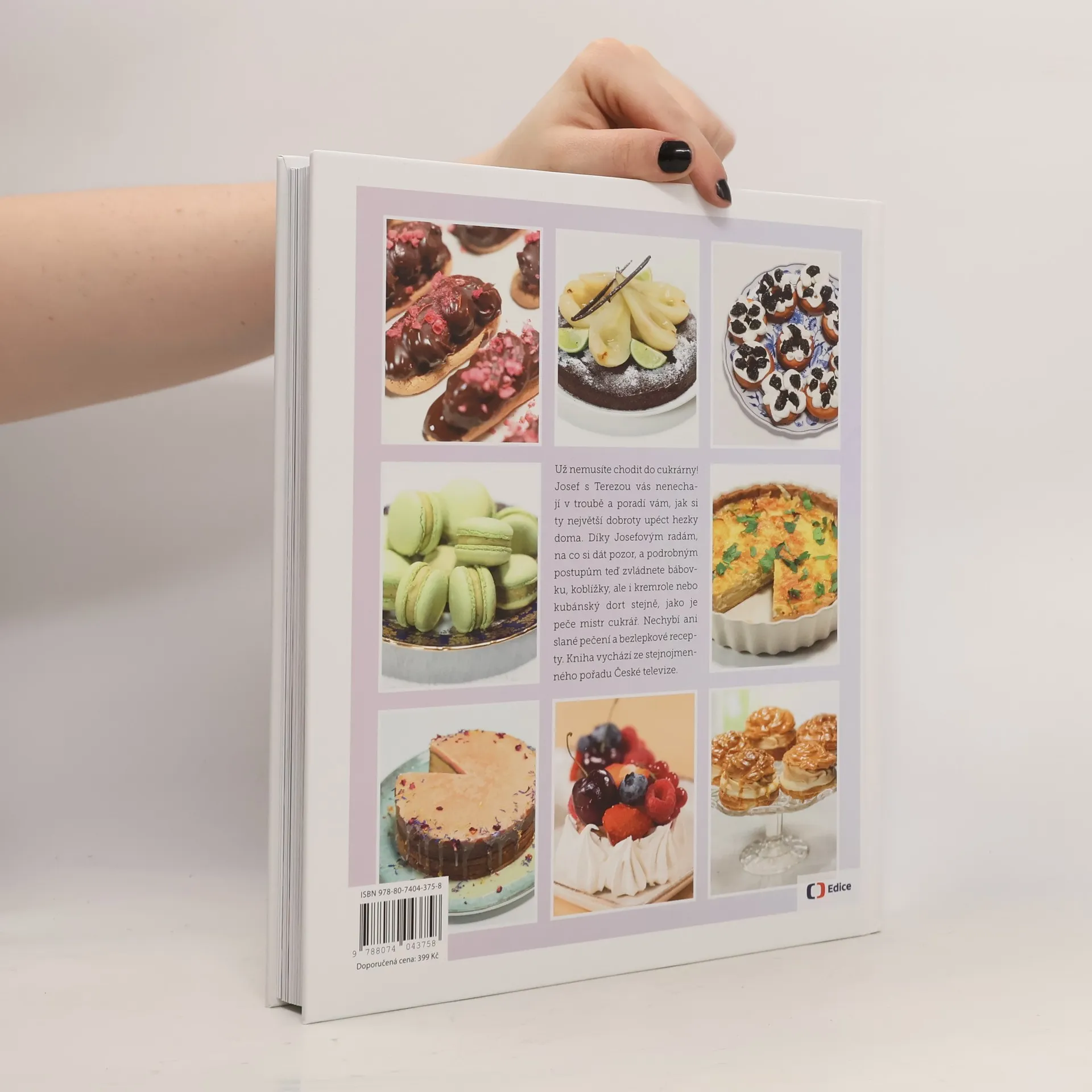 Už nemusíte chodit do cukrárny! Josef s Terezou vás nenechají v troubě a poradí vám, jak si ty největší dobroty upéct snadno doma, tak abyste jimi mohli pohostit i nečekanou nedělní návštěvu. Co dělat, když těsto nekyne? Jak vymazat formu na bábovku? Proč se lité těsto nešlehá? A jak má vypadat upečená makronka? Díky Josefovým radám, na co si dát pozor, a podrobným postupům teď zvládnete koláče, vdolky, ale i kremrole nebo kubánský dort stejně, jako je peče mistr cukrář. Už žádné nevykynuté těsto, zdrclá buchta a přešlehaná šlehačka. Celkem 60 exkluzivních receptů vychází z 1. řady stejnojmenného nedělního pořadu České televize, který se těšil rekordní oblibě diváků. Kniha přináší to nejlepší z kynuté české klasiky, ale také dorty starého Rakouska-Uherska, jednoduché recepty, které tolik nezatíží rodinný rozpočet, a nechybí ani slané nebo bezlepkové pečení.