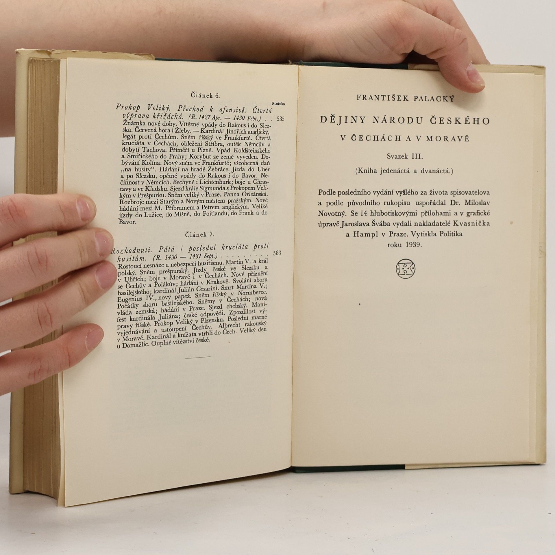 Dějiny národu českého v Čechách a v Moravě. Svazek III. (Kniha jedenáctá a dvanáctá.) Od roku 1403 až do roku 1431. Podle posledního vydání vyšlého za života spisovatelova a podle původního rukopisu uspořádal Dr. Miloslav Novotný.