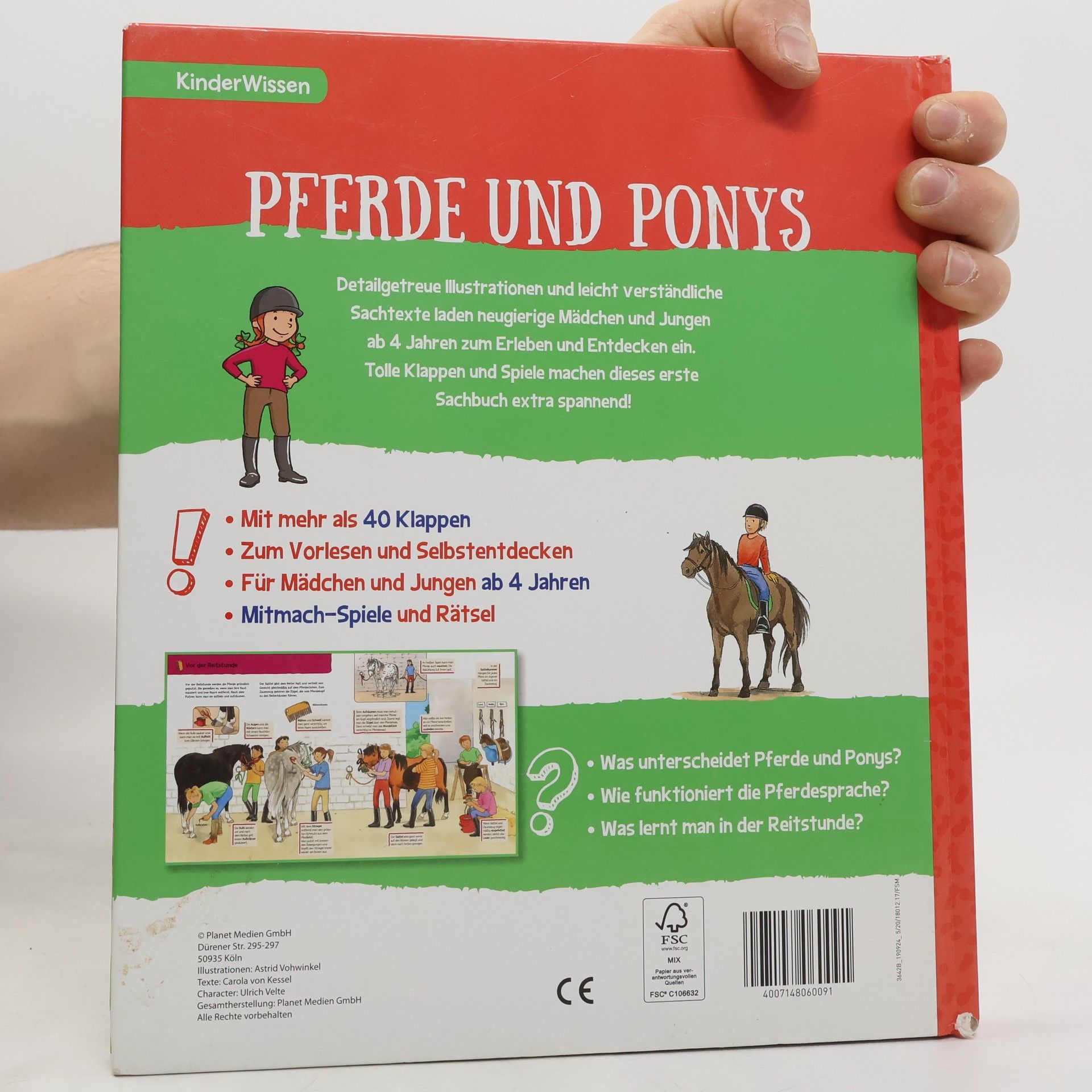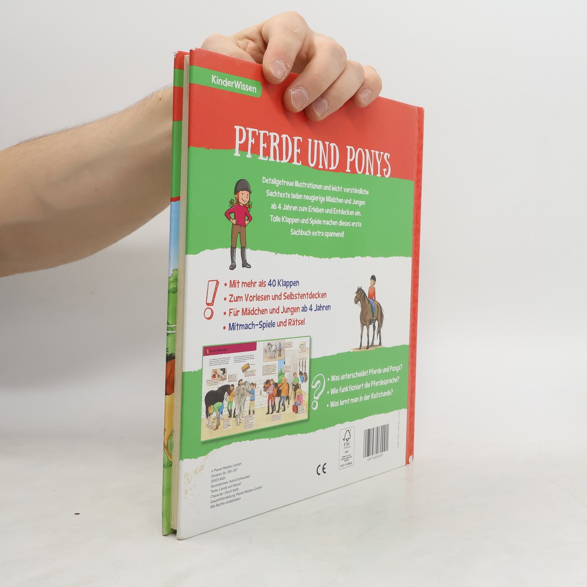 Was unterscheidet Pferde und Ponys? Wie funktioniert de Pferdesprache? Was lernt man in der Reitstunde? Detailgetreue Illustrationen und leicht verständliche Sachtexte laden neugierige Mädchen und Jungen ab 4 Jahren zum Erleben und Entdecken ein. Mehr als 40 Klappen, Mitmach-Spiele und Rätsel machen dieses erste Sachbuch extra spannend! Mit stabilen Pappeseiten. Zum Vorlesen und Selbstentdecken.