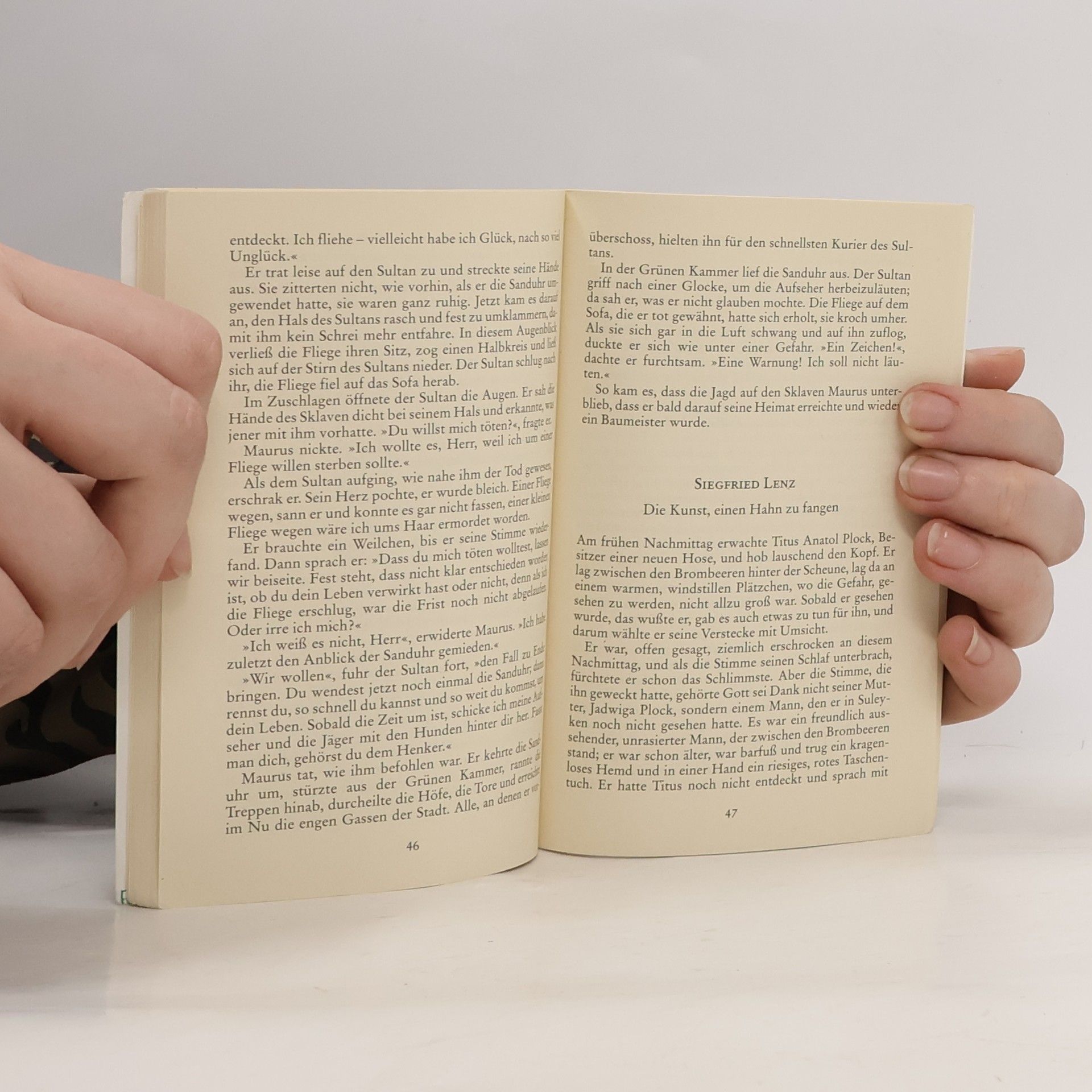 InhaltsverzeichnisPeter Bichsel: Ein Tisch ist ein Tisch Peter Bichsel: Jodok lässt grüßen Wolf Biermann: Das Märchen vom kleinen Herrn Moritz, der eine Glatze kriegte Wolfgang Borchert: Nachts schlafen die Ratten doch Iring Fetscher: Die Geiß und die sieben Wölflein Peter Hacks: Der Bär auf dem Försterball Peter Hacks: Die Geschichte vom König Laurin Frederik Hetmann: Eine ziemlich haarige Geschichte Hellmut Holthaus: Wie die Stadt Zachzarach gesucht, aber nicht gefunden wurde, und wie die Zachurische Bundespost sie finden kann, ohne zu wissen, wo sie liegt. Erich Kästner: Das Märchen vom Glück Ernst Kreuder: Was der Kolkrabe den Tieren riet Erich Kuby: Hasenmanöver Kurt Kusenberg: Die Fliege Siegfried Lenz: Die Kunst, einen Hahn zu fangen Sigismund von Radecki: Mein Zeuge ist Don Gasparro Josef Reding: Ein kleiner bebrillter Ömmes Wolfdietrich Schnurre: Der Brötchenclou Wolfdietrich Schnurre: Veitel und seine Gäste Ursula Wölfel: Nur für Weiße!