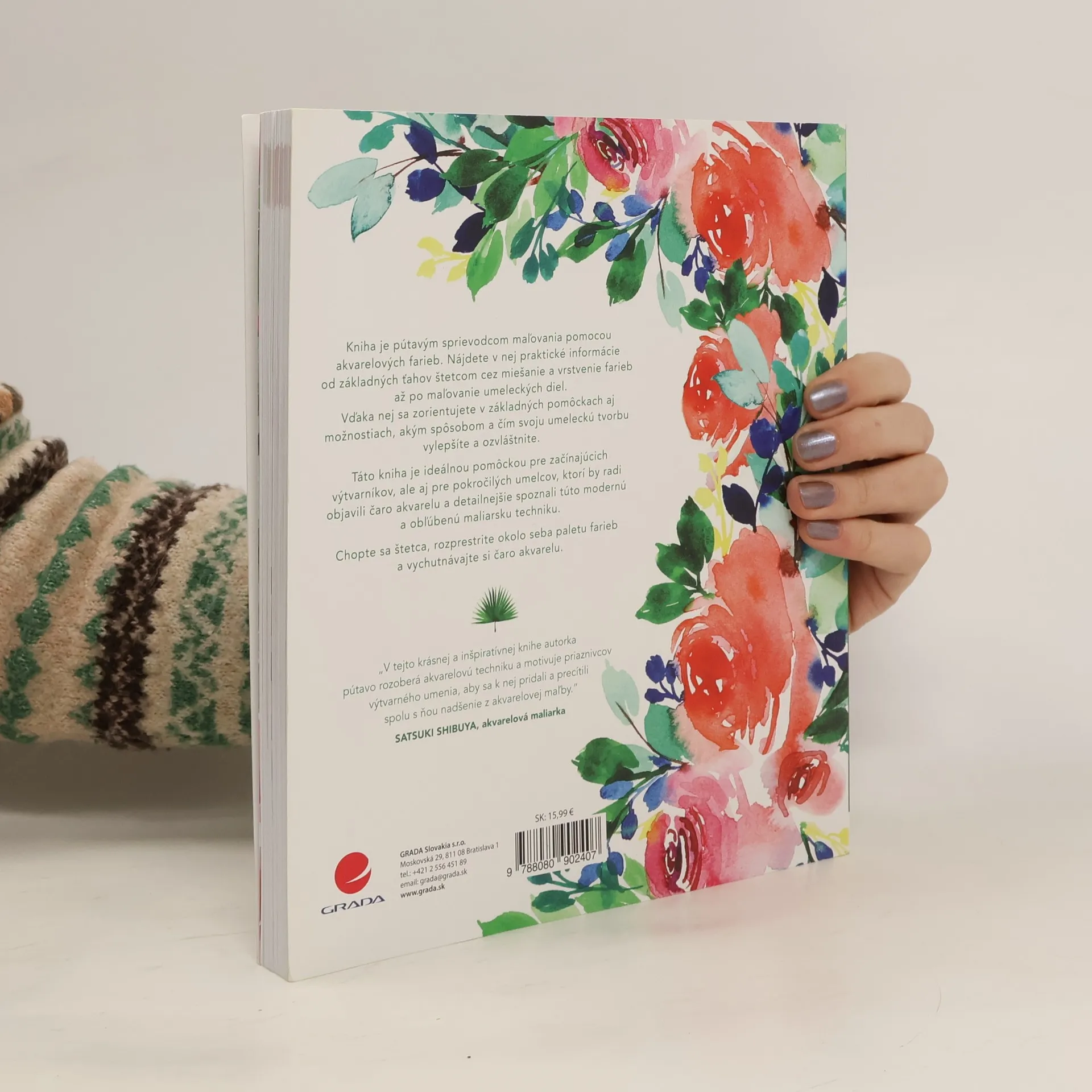 Kniha je pútavým sprievodcom maľovania pomocou akvarelových farieb. Nájdete v nej praktické informácie od základných ťahov štetcom cez miešanie a vrstvenie farieb až po maľovanie umeleckých diel. Vďaka nej sa zorientujete v základných pomôckach aj možnostiach, akým spôsobom a čím svoju umeleckú tvorbu vylepšíte a ozvláštnite. Táto kniha je ideálnou pomôckou pre začínajúcich výtvarníkov, ale aj pre pokročilých umelcov, ktorí by radi objavili čaro akvarelu a detailnejšie spoznali túto modernú a obľúbenú maliarsku techniku. Chopte sa štetca, rozprestrite okolo seba paletu farieb a vychutnávajte si čaro akvarelu.