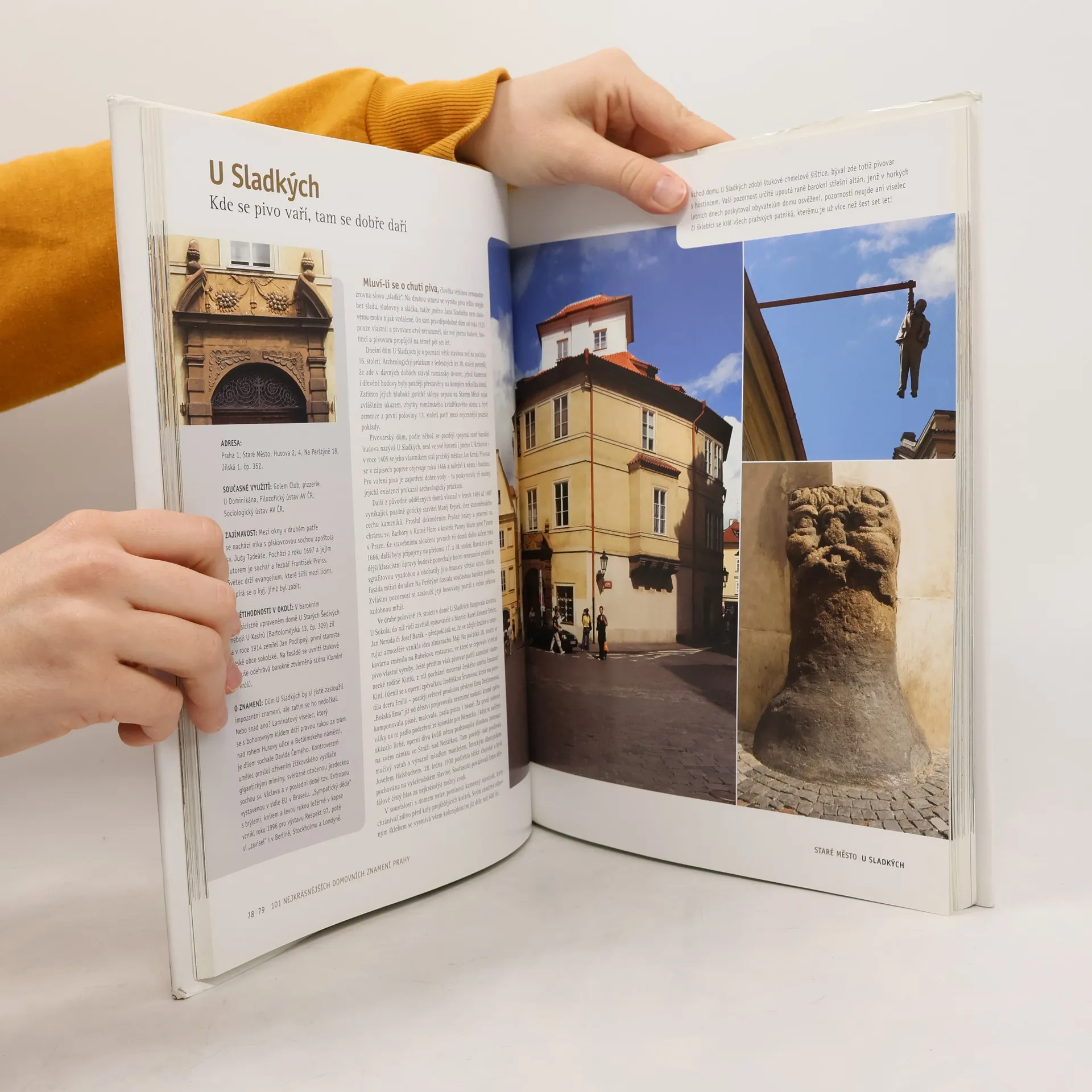 V ediční řadě Má vlast zamířili tentokrát autoři do Prahy, lépe řečeno do jejích starodávných částí. V centru pozornosti však nebudou nádherné pražské výhledy, honosné paláce, malebná zákoutí či vznosné věže a chrámy, ale především starobylé měšťanské domy ozdobené domovním znamením. Tento originální architektonický prvek rozhodně stojí za pozornost – skrývá v sobě nespočet barvitých příběhů, tajemných symbolů a jinotajů. Snímky renomovaných fotografů vám přiblíží nejen 101 pražských domovních znamení, ale i samotnou podobu domů, které prošly rozličnými stavebními epochami od dob románských po dnešek. Dýchá z nich nálada i nesporný genius loci rušných pražských ulic i odlehlých zákoutí. Autoři textů vás provedou stavební historií domů, seznámí vás s jejich obyvateli i pověstmi a událostmi, kterými jsou opředeny. Domovní znamení umístěná na průčelí starobylých budov ke svébytné atmosféře Prahy nesporně patří. Dávala domu jméno, sloužila jako orientační body a propůjčovala mu charakteristickou tvář. Pro lepší orientaci jsme pro vás knihu uspořádali jako procházku podél slavné Královské cesty s několika odbočkami. Cestu vám usnadní dvě barevné mapky, které objevíte na předsádkách a také přehledný rejstřík.