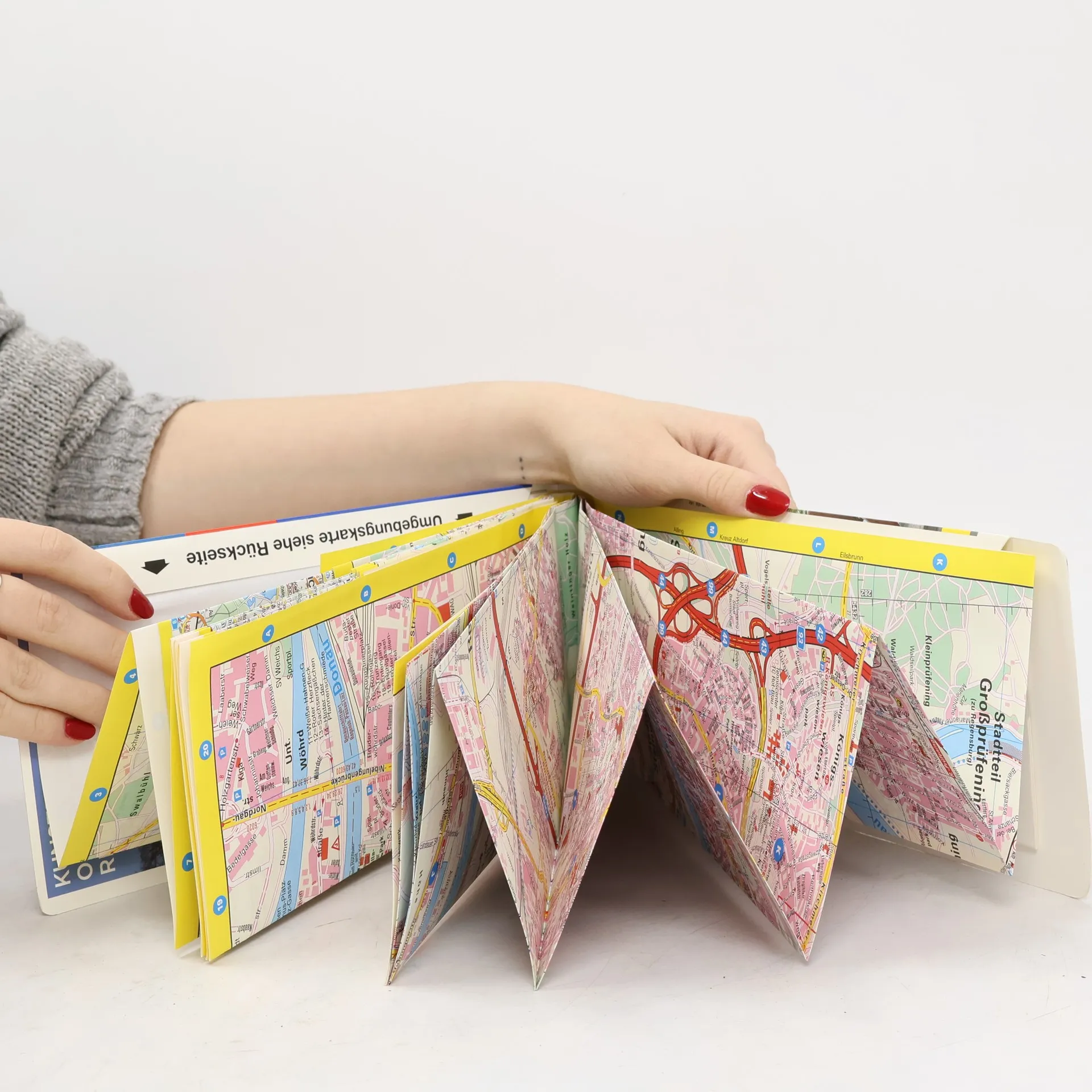 Falk Stadtpläne Extra Standardfaltung: Der detailgenaue, aber dennoch übersichtliche Stadtplan ist die ideale Orientierungshilfe in der fremden Stadt. Ob im Zentrum oder im Randbereich, mit dem Falk Stadtplan Extra findet man jedes gesuchte Ziel. Der Plan ist dank seiner Leporello-Faltung sehr leicht zu handhaben. Den Reisenden wird dieser Falk Stadtplan ein unentbehrlicher „Fremdenführer“ sein, zeigt er doch neben dem umfangreichen Straßenverzeichnis und den Postleitzahlen auch alle für den Touristen wichtigen Informationen. Die Straßenkarte, 1:150.000 auf der Rückseite des Stadtplanes, bietet zusätzlich noch interessante touristische Hinweise für die Umgebung der Titelstadt. Nebenkarten sind für einen schnellen Zugriff geschickt im Beiheft platziert und zeigen Detailinformationen zum Innenstadtbereich, bilden Übersichten zum Thema Öffentlicher Nahverkehr ab und geben wertvolle Auskünfte zu den Postzustellbezirken. Mit dem Falk Stadtplan Extra haben Sie also alles Wichtige stets im Blick.