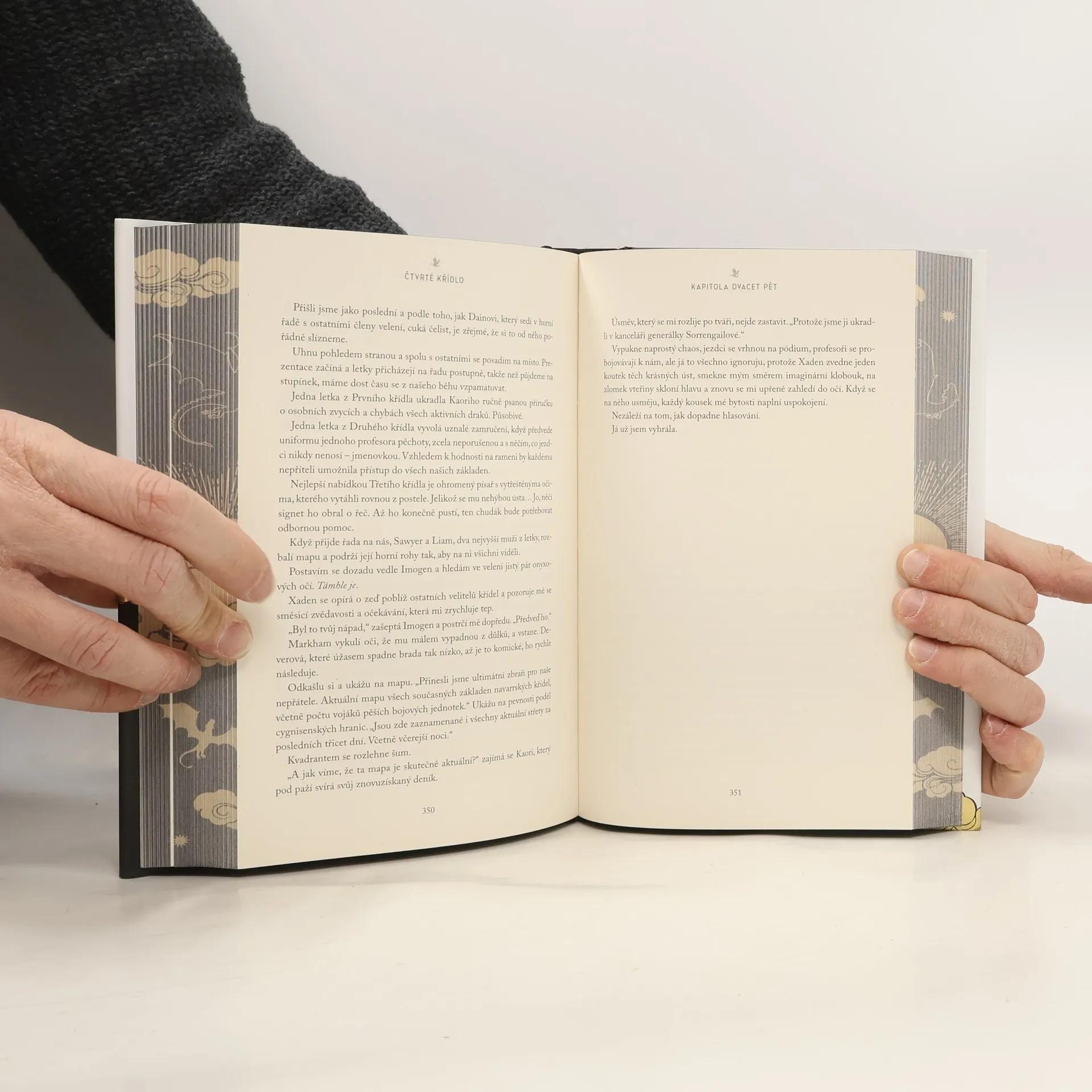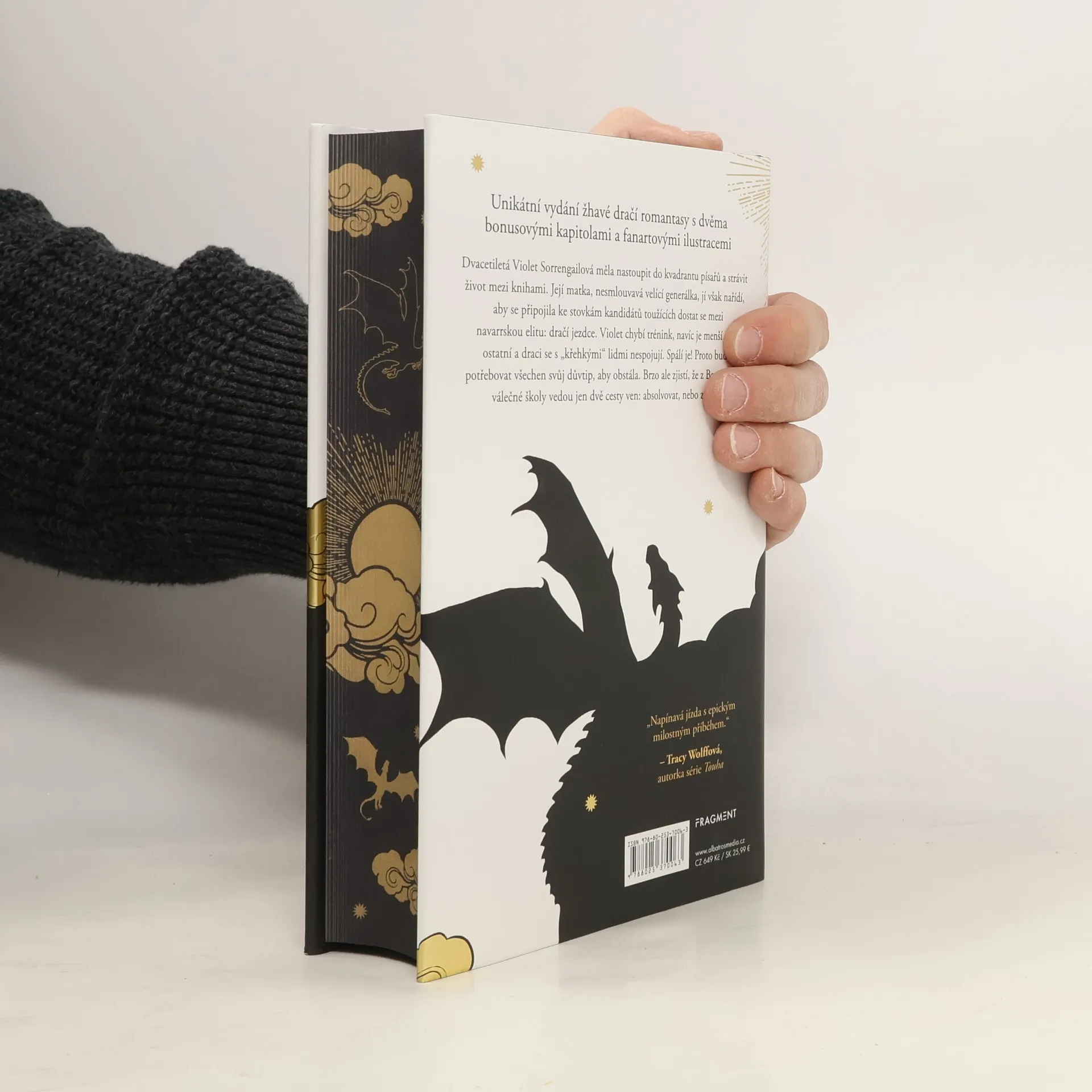 Unikátní vydání žhavé dračí romantasy s dvěma bonusovými kapitolami a fanartovými ilustracemi. Dvacetiletá Violet Sorrengailová měla nastoupit do kvadrantu písařů a strávit život mezi knihami. Její matka, nesmlouvavá velící generálka, jí však nařídí, aby se připojila ke stovkám kandidátů toužících dostat se mezi navarrskou elitu: dračí jezdce. Violet chybí trénink, navíc je menší než ostatní a draci se s „křehkými“ lidmi nespojují. Spálí je! Proto bude potřebovat všechen svůj důvtip, aby obstála. Brzo ale zjistí, že z Basgiathské válečné školy vedou jen dvě cesty ven: absolvovat, nebo zemřít.
