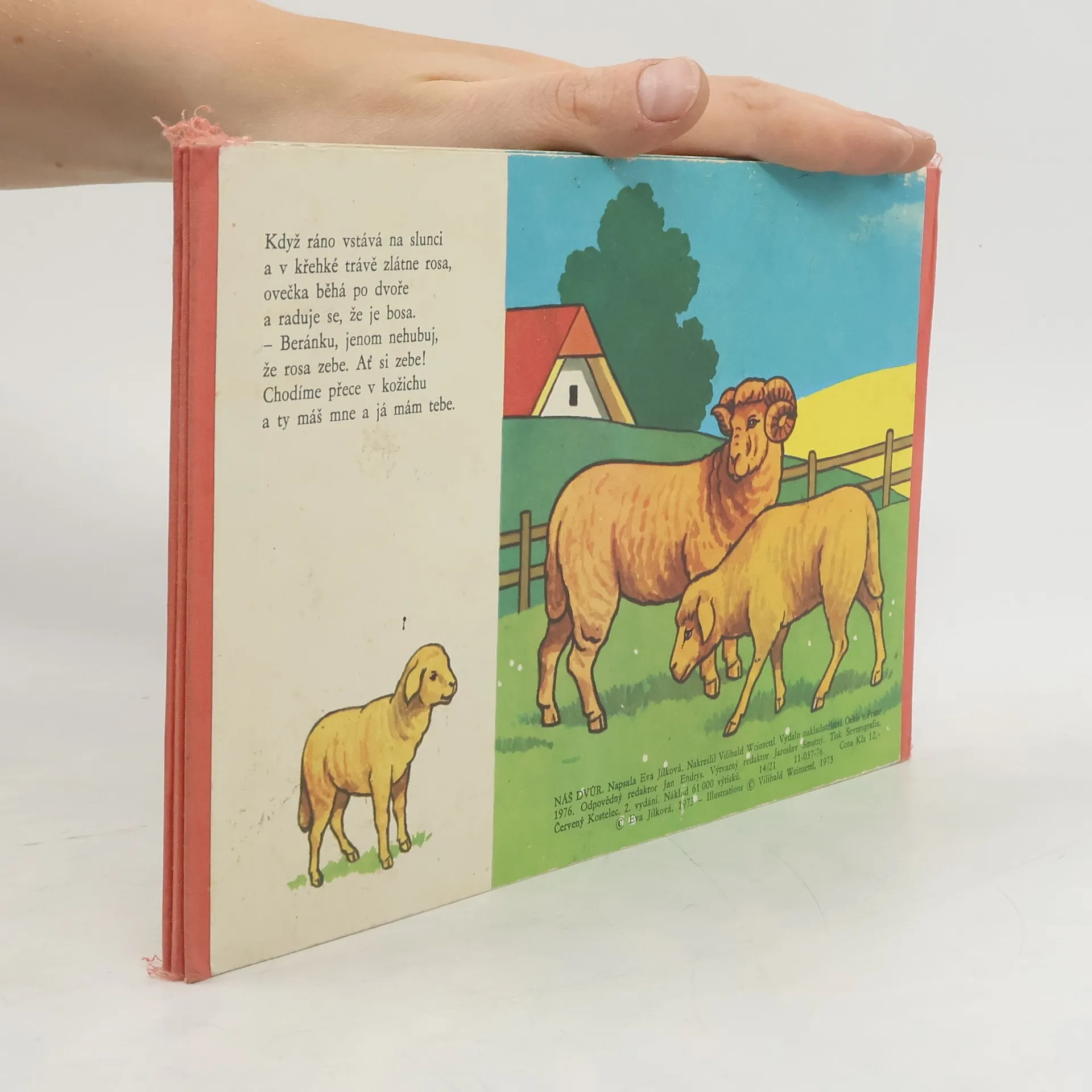 Leporelo pro malé děti, které obsahuje obrázky zvířátek, s nimiž se mohou potkat na dvoře. Ke každému zvířátku je vždy připojena básnička.