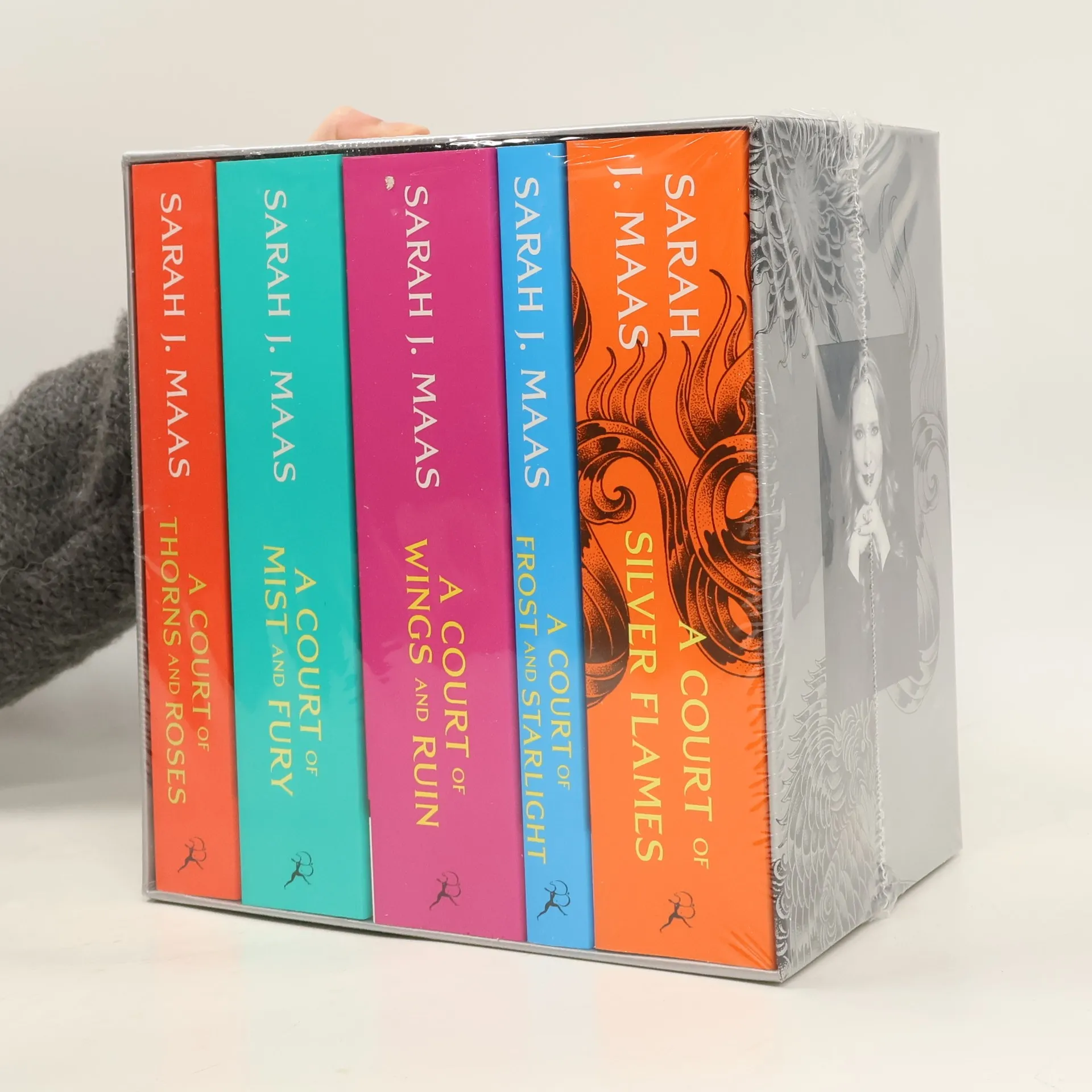 This book set by Sarah J. Maas encompasses the complete narrative arc of the "A Court of Thorns and Roses" series, blending elements of fantasy, romance, and adventure. The story follows Feyre Archeron, a young huntress who becomes entangled in the world of the Fae after killing a wolf in the woods. As she navigates the complexities of this magical realm, she encounters key characters such as Tamlin, a High Fae lord, and Rhysand, the enigmatic leader of the Night Court. Themes of love, sacrifice, and the struggle for power are explored throughout the series, alongside the development of Feyre's character from a mortal to a formidable figure within the Fae world. The narrative addresses issues of trauma, resilience, and the consequences of choices, providing a multifaceted exploration of its characters' journeys across five volumes.