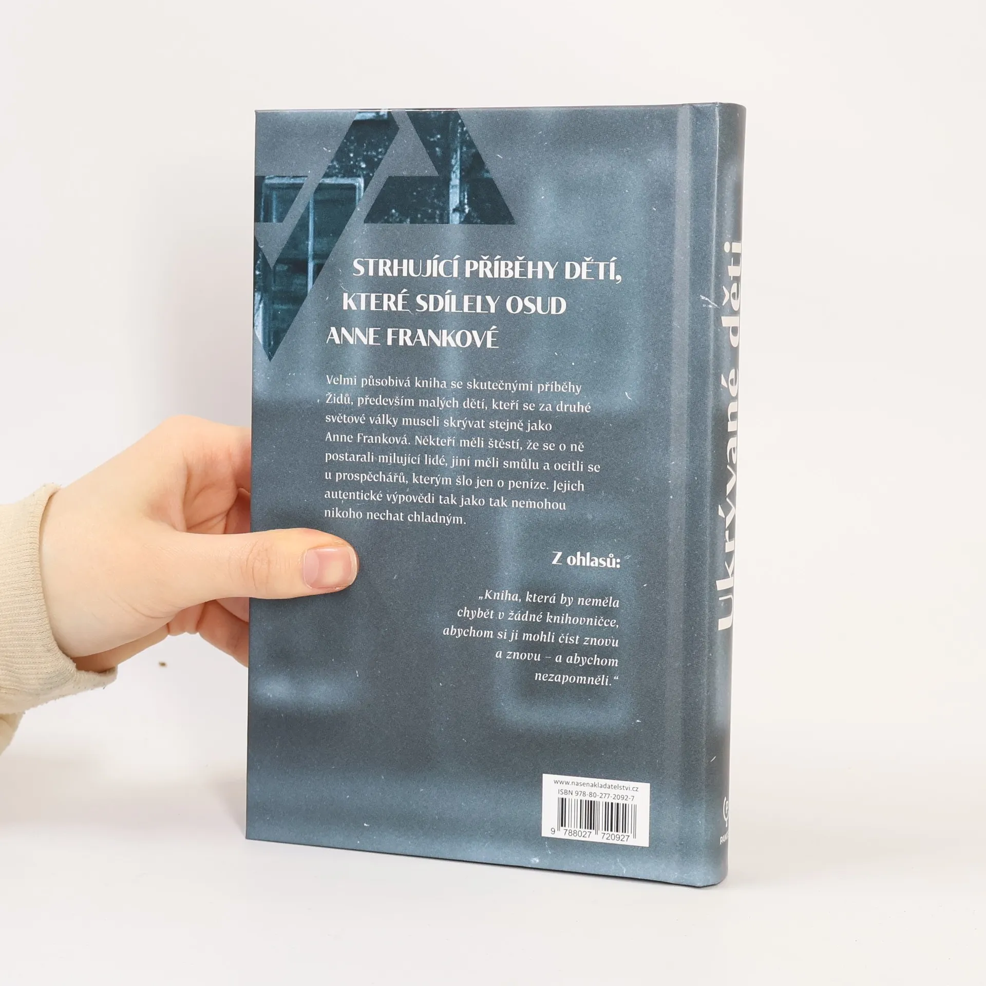 Hovoříme-li o ukrývaných dětech, každý hned pomyslí na Anne Frankovou. Co ale víme o tisícovkách dalších židovských dětí a dospělých, kteří se za druhé světové války ukrývali také? Mnozí z nich byli zatčeni, deportováni a většinou zavražděni v koncentračních táborech. Jiným se podařilo přežít. Kniha Ukrývané děti obsahuje patnáct autentických výpovědí o dramatech, strachu, nejistotě a odcizení, kterými si ukrývané děti prošly. Protagonisté zdokumentovaných příběhů patří k posledním žijícím svědkům a mnozí z nich vyprávěli o svých zkušenostech vůbec poprvé. Tyto příběhy vykreslují dojemný obraz doby, kdy byly tisíce dětí odloučeny od svých rodičů kvůli pronásledování a válečnému násilí. Jak se ukrývalo? Kam měl člověk jít? Jaké to je, nemít svobodu být tím, kým jste, věřit tomu, čemu chcete, moct říkat, co chcete? Skrývání bylo „tlakovým hrncem“, v němž vřely emoce, kde byl přítomen strach i nenávist, stejně jako láska a obětavost.