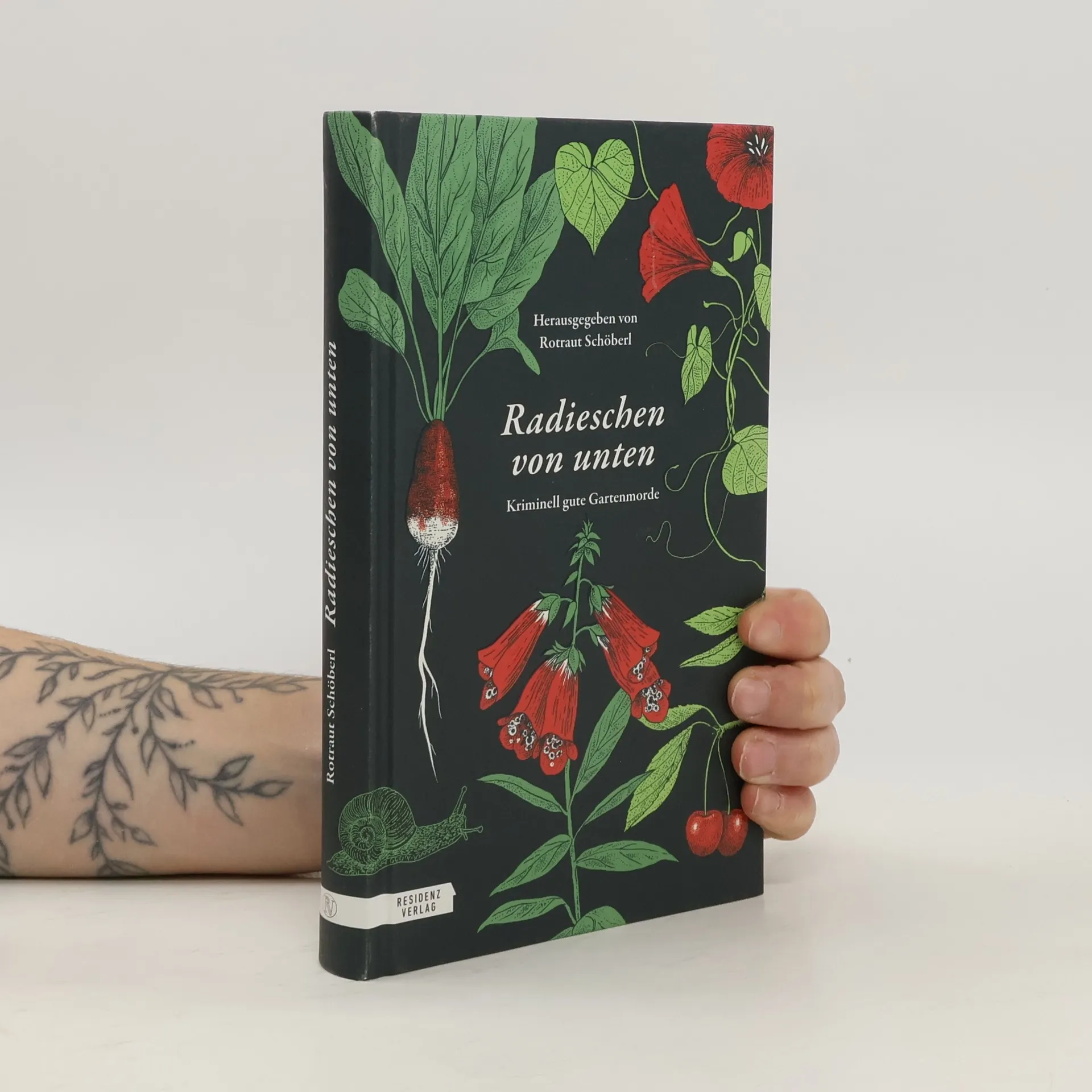 Rotraut Schöberl, engagierte Buchfrau und begeisterte Gärtnerin, verbindet ihre Leidenschaften gerne miteinander. Zwischen dem Schneiden ihrer Rosen, dem Gärtnereibesuch und dem genüsslichen Beobachten ihrer Pflanzen wird ihr klar: Ein Garten ist eigentlich der ideale Ort für einen Mord – und zahlreiche gartenaffine Autor*innen wie Alex Beer, Agatha Christie, Ann Granger, Tatjana Kruse, Thomas Raab, Eva Rossmann, sehen das genauso. Man muss ja nicht die bekannten Giftpflanzen verwenden, denn wer mordet heute noch mit Stechapfel oder Tollkirsche? Und auch der Gärtner ist heutzutage selten der Mörder – oder doch? Aber einen Tipp hat Rotraut Schöberl in „Radieschen von unten“: Wenn ihr eine Leiche zu verscharren habt, pflanzt geschützte Pflanzen darauf, dann darf dort niemand mehr graben… Im Grünen morden Bettina Balàka, Alex Beer, Agatha Christie, Ann Granger, Severin Groebner, Margarita Kinstner, Ralf Kramp, Tatjana Kruse, -ky, Martina Parker, Theresa Prammer, Thomas Raab, Erwin Riedesser, Eva Rossmann, Clementine Skorpil, Gabriele Wolff, Peter Zirbs.