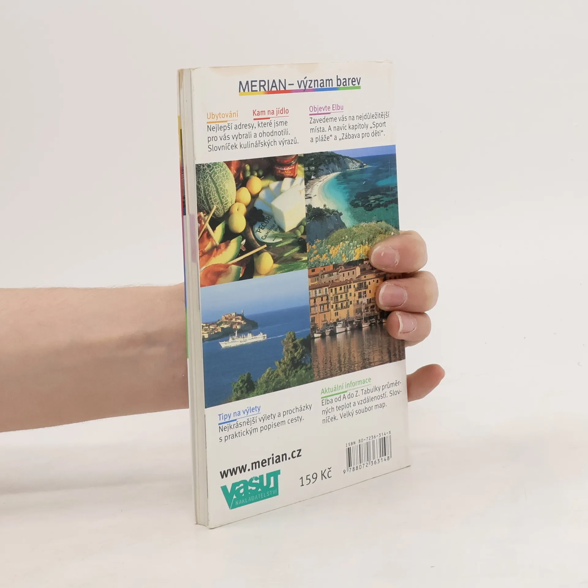 Český překlad jednoho ze svazků německé ediční řady "Merian live!" popisuje zajímavá místa italského ostrova Elba, z historie známého nuceným pobytem Napoleona Bonaparte. Popsána jsou zajímavá místa jednotlivých přístavních měst, hlavního města Portoferraia i vnitrozemí ostrova. Součástí svazku je řada praktických informací, poskytujících základní údaje o ubytovacích a stravovacích zařízeních v jednotlivých městech, otvíracích dobách památkových objektů a muzeí nebo adresách informačních kanceláří. Bohatý fotografický doprovod, plánky měst, v závěru cestovní mapa a rejstříkový aparát.