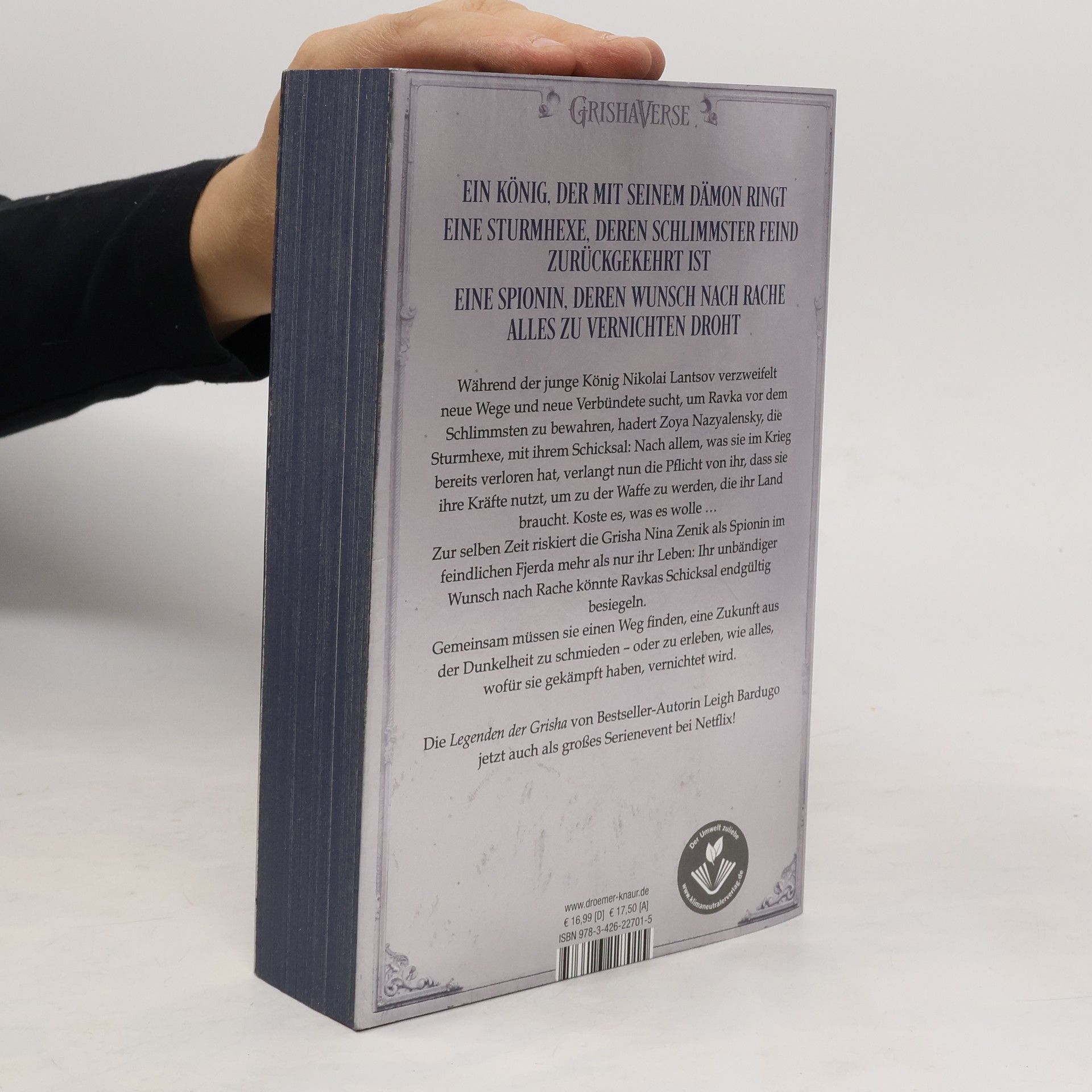 Ein König, der mit seinem Dämon ringt Eine Sturmhexe, deren schlimmster Feind zurückgekehrt ist Eine Spionin, deren Wunsch nach Rache alles zu vernichten droht Der schicksalhafte Kampf um den Zarenthron von Ravka steuert unaufhaltsam auf eine Entscheidung zu: Wird ein Krieg, den niemand gewinnen kann, eine ganz Welt in Asche versinken lassen? Während der junge König Nikolai Lantsov – auch mithilfe des Monsters in seinem Inneren – alles versucht, um Ravka vor dem Schlimmsten zu bewahren, hadert Zoya Nazyalensky, die Sturmhexe, mit ihrem Schicksal: Nach allem, was sie im Krieg bereits verloren hat, verlangt nun die Pflicht von ihr, dass sie ihre Kräfte nutzt, um die Waffe zu werden, die ihr Land braucht. Koste es, was es wolle… Zur selben Zeit riskiert die Grisha Nina Zenik als Spionin im feindlichen Fjerda mehr als nur ihr Leben: Ihr unbändiger Wunsch nach Rache könnte Ravkas Schicksal endgültig besiegeln – und Nina die Chance nehmen, ihr trauerndes Herz zu heilen…