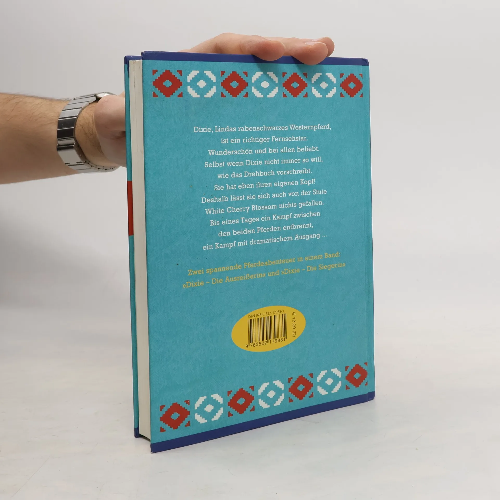 Dixie, Lindas rabenschwarzes Westernpferd, ist ein richtiger Fernsehstar. Wunderschön und bei allen beliebt. Selbst wenn sie nicht immer so will, wie das Drehbuch vorschreibt. Dixie hat eben ihren eigenen Kopf! Deshalb lässt sie sich auch von der Stute White Cherry Blossom nichts gefallen. Bis eines Tages ein Kampf zwischen den beiden Pferden entbrennt, ein Kampf mit dramatischem Ausgang. Zwei spannende Pferdeabenteuer in einem Band, auch einzeln lieferbar: Dixie - die Ausreißerin: ISBN 978-3-522-17414-5 Dixie - die Siegerin: ISBN 978-3-522-17489-3 Ab 10 Jahren