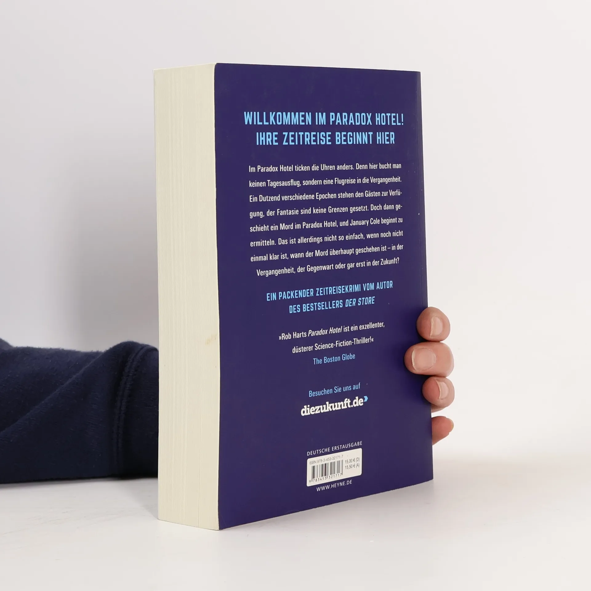 Im Paradox Hotel ticken die Uhren anders. Denn hier bucht man keinen Tagesausflug in die nähere Umgebung, sondern eine Flugreise in die Vergangenheit. Ein Dutzend verschiedene Epochen stehen den Gästen zur Verfügung, der Fantasie sind keine Grenzen gesetzt. Doch dann geschieht ein Mord im Paradox Hotel, und January Cole beginnt zu ermitteln. Das ist allerdings nicht so einfach, wenn noch nicht einmal klar ist, wann der Mord überhaupt geschehen ist – in der Vergangenheit, der Gegenwart oder gar erst in der Zukunft? Willkommen im Paradox Hotel! Ihre Zeitreise beginnt hier. Im einzigen Hotel beim Zeitportal ist vieles anders: die Gäste sind kostümiert, die Uhren ticken langsamer – und ein Mordopfer verschwindet in der Vergangenheit Der neue, packende Zeitreise-Krimi vom Autor von »Der Store«