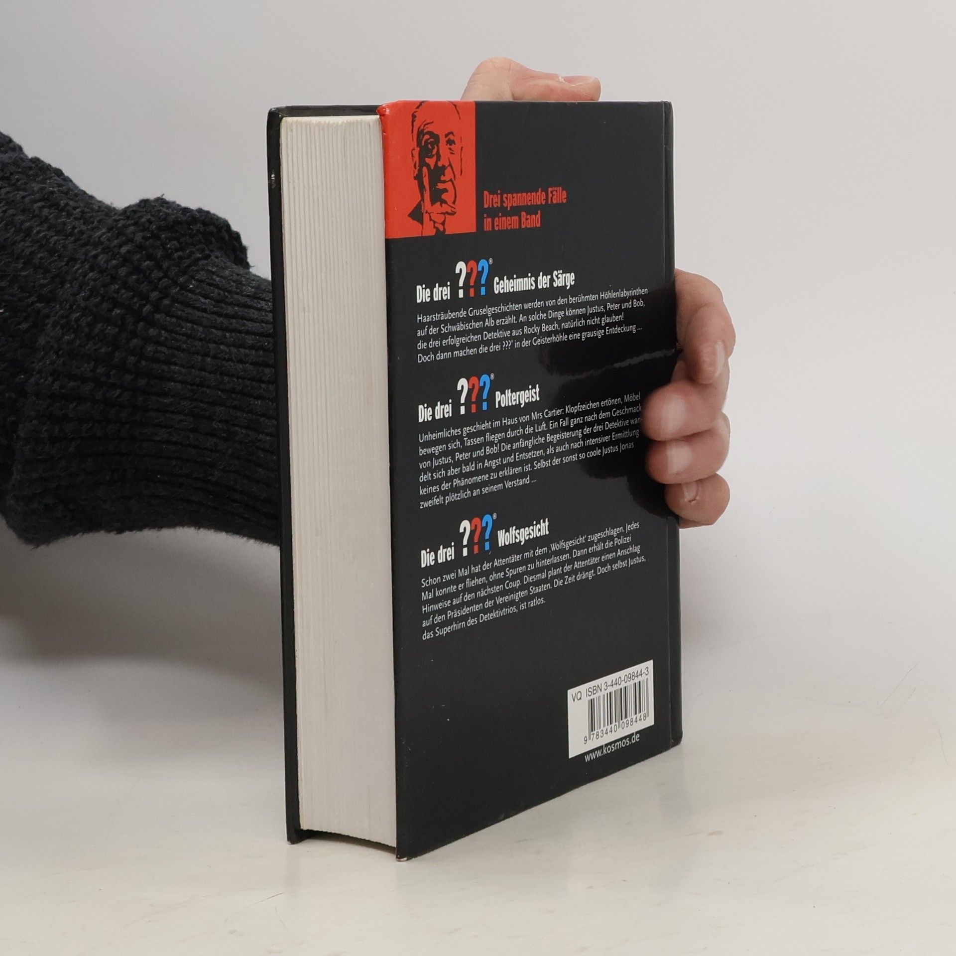Die drei ??? Geheimnis der Särge Haarsträubende Gruselgeschichten werden von den berühmten Höhlenlabyrinthen auf der schwäbischen Alb erzählt. An solche Dinge können Justus, Peter und Bob, die drei erfolgreichen Detektive aus Rocky Beach, natürlich nicht glauben! Doch dann machen die drei??? In der Geisterhöhle eine grausige Entdeckung...Die drei ??? Poltergeist Unheimliches geschieht im Haus von Mrs Klopfzeichen ertönen, Möbel bewegen sich, Tassen fliegen durch die Luft. Ein Fall ganz nach dem Geschmack von Justus, Peter und Bob! Die anfängliche Begeisterung der drei Detektive wandelt sich aber bald in Angst und Entsetzen, als auch nach intensiver Ermittlung keines der Phänomene zu erklären ist. Selbst der so coole Justus Jonas zweifelt plötzlich an seinem Verstand.Die drei ??? das Wolfsgesicht Schon zwei Mal hat der Attentäter mit dem "Wolfsgesicht" zugeschlagen. Jedes Mal konnte er fliehen, ohne Spuren zu hinterlassen. Dann erhält die Polizei Hinweise auf den nächsten Coup. Diesmal plant der Attentäter einen Anschlag auf den Präsidenten der Vereinigten Staaten. Die Zeit drängt. Doch selbst Justus, das Superhirn des Detektivtrios, ist ratlos.