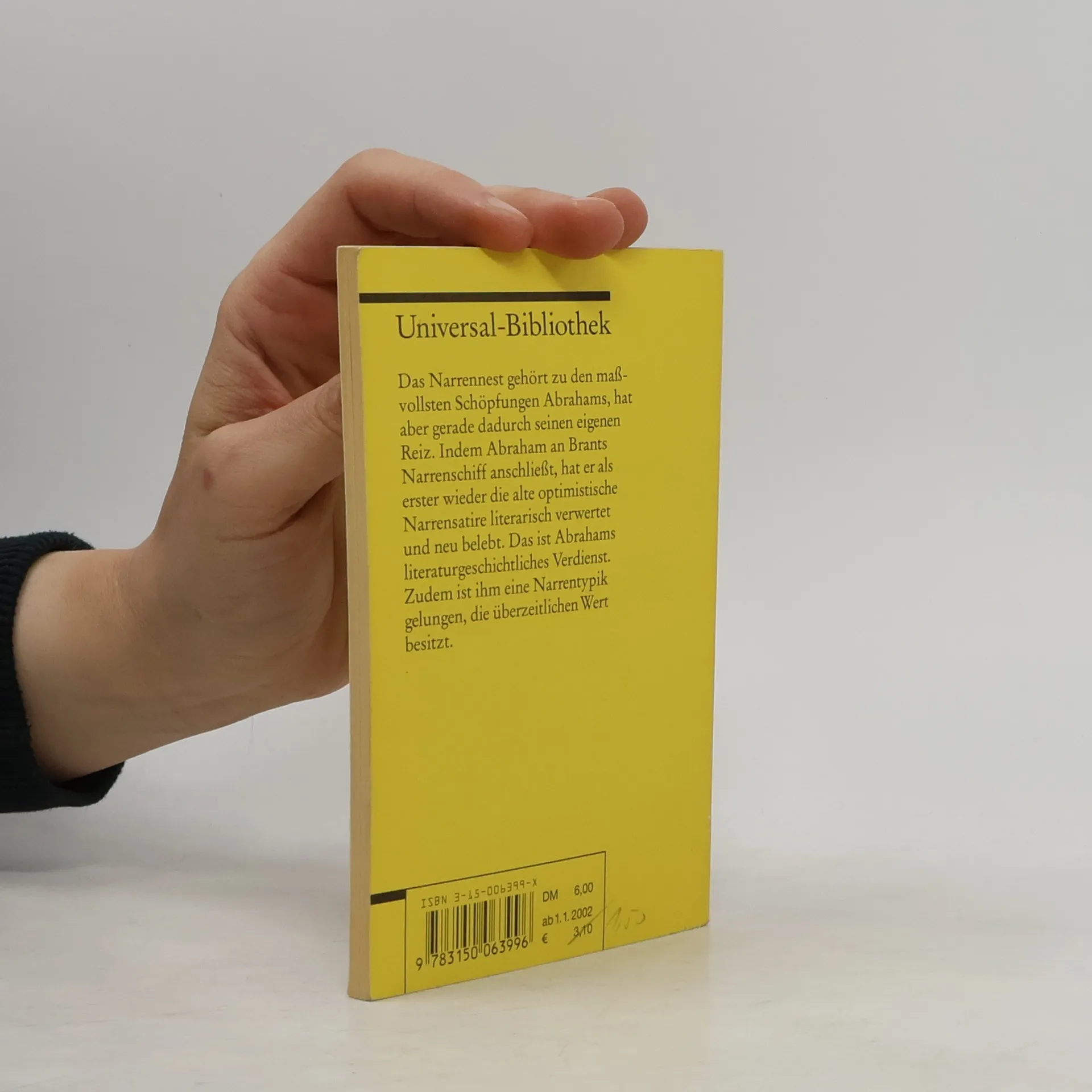 Abraham a Sancta Clara (1644/1709) war ein katholischer Geistlicher, Prediger und Schriftsteller. Er gilt mit rund 600 Einzelschriften als bedeutendster deutscher katholischer Prediger und Poet der Barockzeit mit ungewöhnlicher Sprachkraft und Sprachfantasie. Inhalt: Ein einfältiger Narr. Ein verliebter Narr. Ein geitziger Narr. Ein zorniger Narr. Ein versoffener Narr. Ein fauler Narr. Ein verlogner Narr. Ein forchtsamber Narr. Ein hoffärtiger Narr. Ein grober Narr. Ein eifersüchtiger Narr. Ein lobwürdiger Narr.