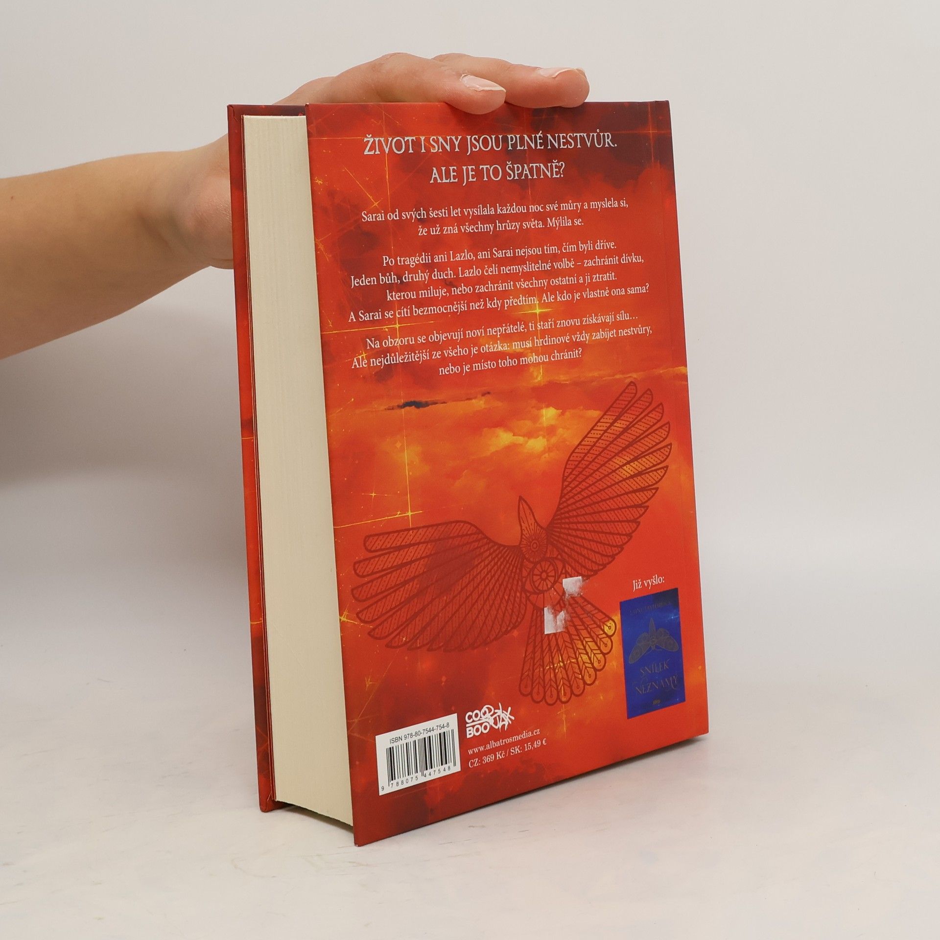 Sarai vysílala každou noc své můry a myslela si, že už zná všechny hrůzy světa. Mýlila se. Po tragédii ani Lazlo, ani Sarai nejsou tím, čím byli dříve. Jeden bůh, druhý duch. Lazlo čelí nemyslitelné volbě – zachránit dívku, kterou miluje, nebo zachránit všechny ostatní a ji ztratit. A Sarai se cítí bezmocnější než kdy předtím. Na obzoru se objevují noví nepřátelé, ti staří znovu získávají sílu… Ale nejdůležitější ze všeho je otázka: Musí hrdinové vždy zabíjet nestvůry, nebo je místo toho mohou chránit?