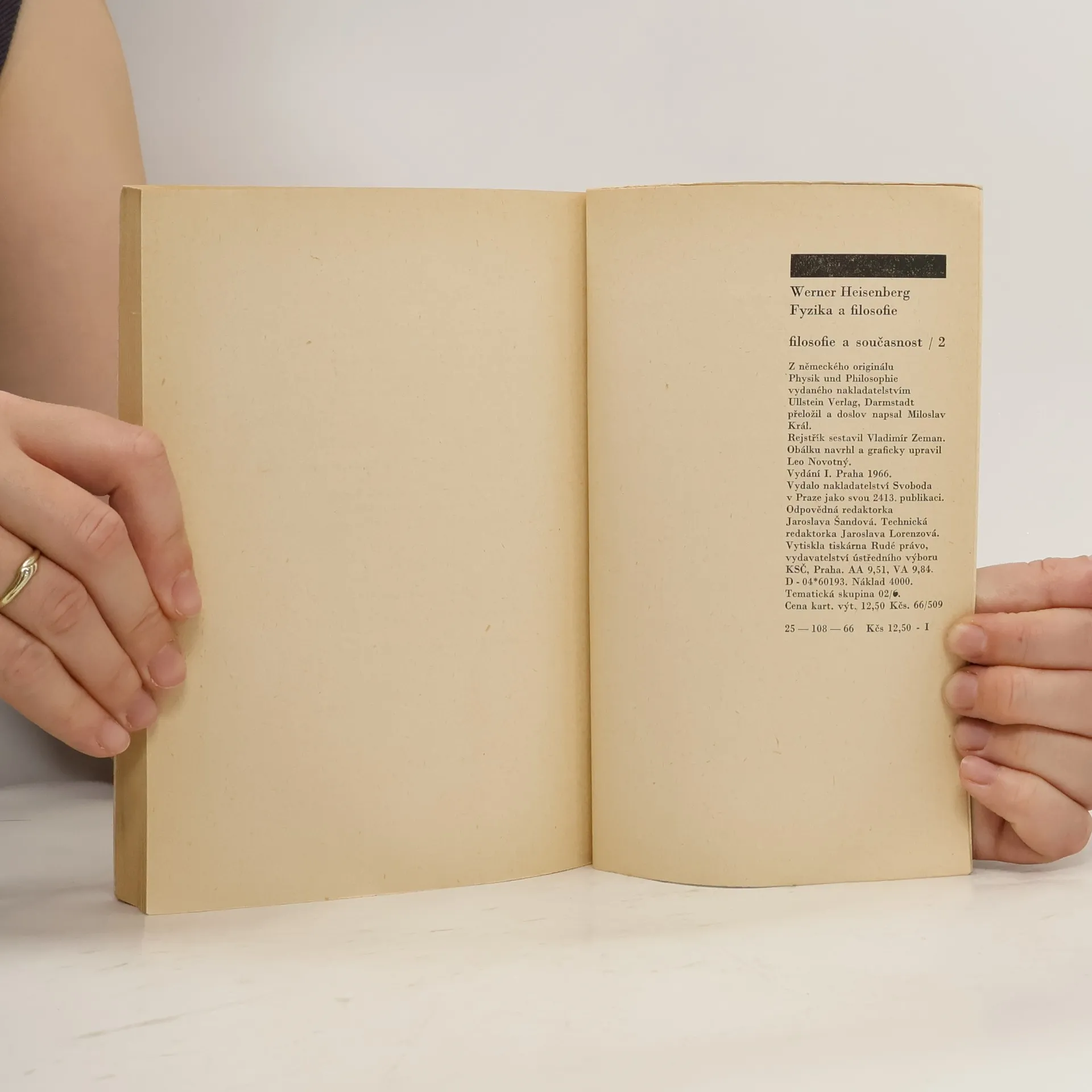 Kniha Fyzika a filosofie německého fyzika Wernera Karla Heisenberga (1901-1976), nositele Nobelovy ceny (1932) za kvantovou mechaniku, je brilantní ukázkou díla, které si zachovalo svou aktuálnost i po více než čtyřiceti letech, která uplynula od jeho prvního vydání. Kniha, která vznikla jako záznam autorových přednášek na univerzitě v St. Andrews ve Skotsku v letech 1955-56, vysvětluje, jak mohou vědci využívat filosofii a jaký význam má filosofie pro vědu jako takovou. Heisenberg totiž nejen dobře porozuměl filosofii, ale zároveň pochopil, že filosofie tvoří základ celé západní kultury a civilizace, který se promítá do všeho vědeckého vědění. Moderní fyzika na začátku dvacátého století přinesla řadu pronikavých změn v představách o světě, nový pohled na pojem prostoru, času, kauzality i objektivity vědeckého poznání. Tyto nové pohledy nutně ovlivňují i obecnější, filosofické chápání světa. Heisenbergovy úvahy o vývojovém procesu fyzikálního poznání jsou vyloženy velice srozumitelně i pro laiky a přinášejí mnoho cenných podnětů k přemýšlení těm, kteří chtějí hlouběji porozumět vztahu filosofie a přírodních věd.