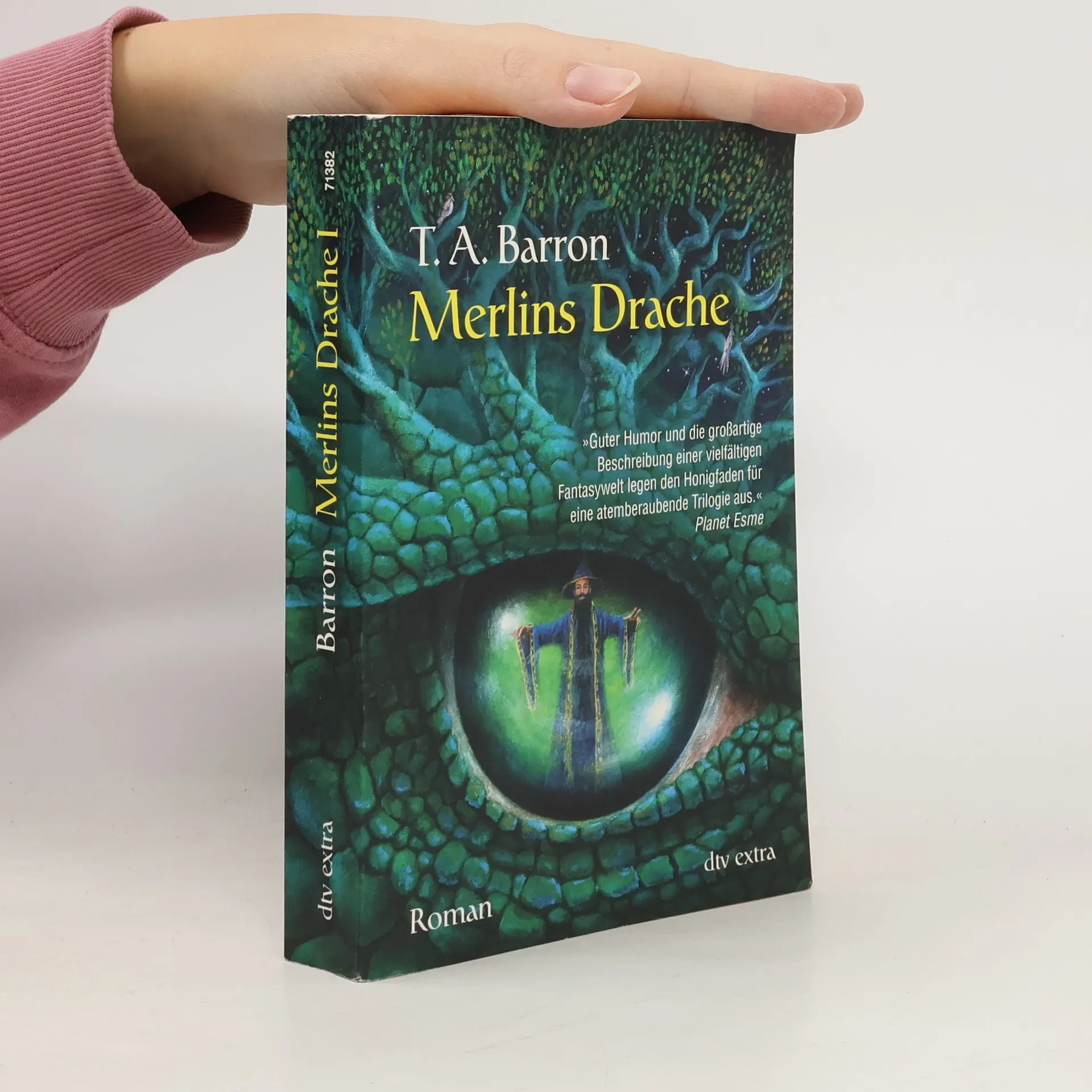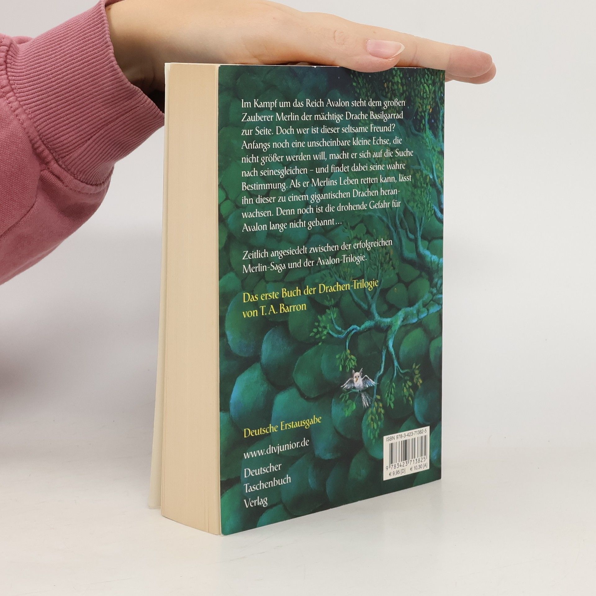 Als Merlin seinen magischen Samen in die Erde legt, verfängt sich in den Zweigen des daraus spriessenden Baumes Avalon ein kleines grünes Ei. Das winzige echsenähnliche Wesen, das daraus schlüpft, wird zu dessen eigenem Kummer nicht sehr gross. Es macht sich dennoch auf eine lange, abenteuerliche Reise und trifft schliesslich auf Merlin - den es aus einem lebensgefährlichen Kampf retten kann. Dankbar erfüllt Merlin seinen grössten Wunsch und lässt es zu einem mächtigen Drachen heranwachsen. Fortan sind die beiden - zum Schutz Avalons - magisch miteinander verbunden. T(homas) A. Barron wuchs in Massachussetts auf. Er studierte in Princeton und Oxford Philosophie, Politik und Wirtschaftswissenschaften, war Manager in einer New Yorker Anlagefirma und anschliessend selbstständiger Unternehmer.Seit 1990 ist er freier Autor und lebt mit seiner Familie in Boulder, Colorado. Seine Merlin-Saga, die auf Deutsch bei dtv junior vorliegt, wurde in viele Sprachen übersetzt und hat weltweit eine grosse Fangemeinde.