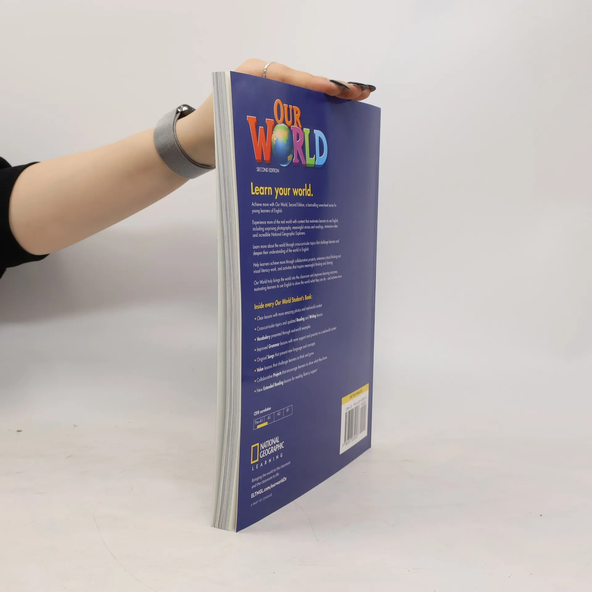 Achieve more with Our World, Second Edition, a best-selling seven-level series for young learners of English. Experience more of the real world with content that motivates learners to use English, including surprising photography, meaningful stories and readings, immersive video, and incredible National Geographic Explorers. Learn more about the world through cross-curricular topics that challenge learners and deepen their understanding of the world in English. Help learners achieve more through collaborative projects, extensive critical thinking and visual literacy work, and activities that inspire meaningful thinking and sharing. Our World truly brings the world into the classroom and improves learning outcomes, motivating learners to use English to show the world what they can do -- and achieve more. * Clear lessons with more amazing photos and real-world content * Cross-curricular topics and updated Reading and Writing lessons * Vocabulary presented through real-world examples * Improved Grammar lessons with more support and practice in a real-world context * Original Songs present new language and concepts * Value and Mission lessons challenge learners to think and grow * Collaborative Projects encourage learners to show what they know * New Extended Reading lessons for reading fluency support