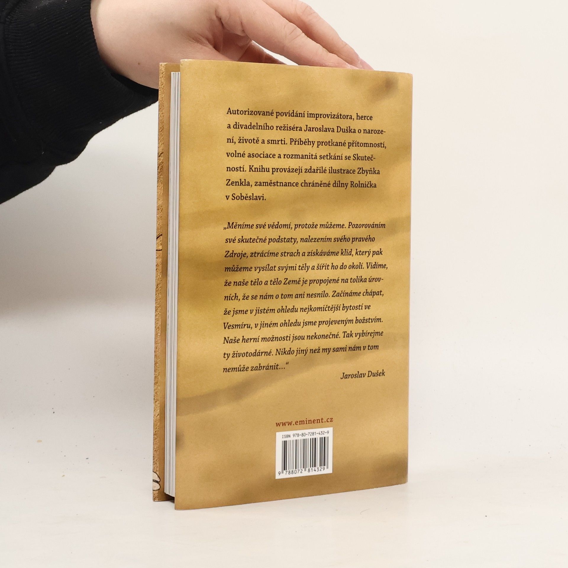 Autorizované povídání známého herce Jaroslava Duška o narození, životě a smrti. Příběhy protkané přítomností, volné asociace a rozmanitá setkání se Skutečností. Knihu provázejí zdařilé ilustrace Zbyňka Zenkla, zaměstnance chráněné dílny Rolnička v Soběslavi.