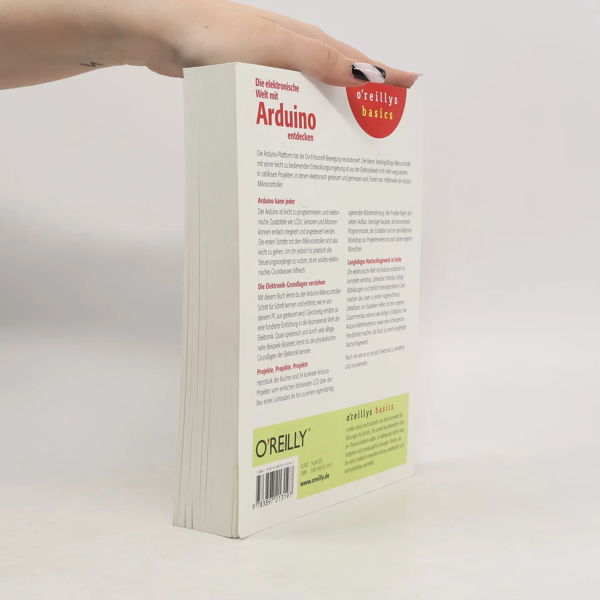 Die Arduino-Plattform hat die Do-It-Yourself-Bewegung revolutioniert. Der leistungsfähige Mikrocontroller und die benutzerfreundliche Entwicklungsumgebung sind aus der Elektronikwelt nicht mehr wegzudenken. Arduino ist leicht zu programmieren, und elektronische Zusatzteile wie LCDs, Sensoren und Motoren können einfach integriert werden. Die ersten Schritte mit dem Mikrocontroller sind einfach, jedoch ist ein solides elektronisches Grundwissen hilfreich, um ihn für vielfältige Steuerungsvorgänge zu nutzen. In diesem Buch lernst du den Arduino-Mikrocontroller Schritt für Schritt kennen und erfährst, wie er von deinem PC aus gesteuert wird. Gleichzeitig erhältst du eine fundierte Einführung in die faszinierende Welt der Elektronik und die physikalischen Grundlagen. Nach den leicht verständlichen Grundlagen warten 34 konkrete Projekte auf dich, vom einfachen blinkenden LCD bis hin zu einem selbstständig agierenden Roboterfahrzeug. Jedes Projekt enthält die benötigten Bauteile, kommentierten Programmcode, Schaltpläne und Workshops zur individuellen Erweiterung. Das Buch ist komplett vierfarbig gestaltet, mit zahlreichen Farbfotos und farblich hervorgehobenem Code, was das Lesen angenehm macht. Detailfotos von Bauteilen und farbige Schaltpläne unterstützen den Zusammenbau. Eine Arduino-Befehlsreferenz und eine umfangreiche Händlerliste machen es zu einem langlebigen Nachschlagewerk. Elektronik zu verstehen und anzuwenden war nie