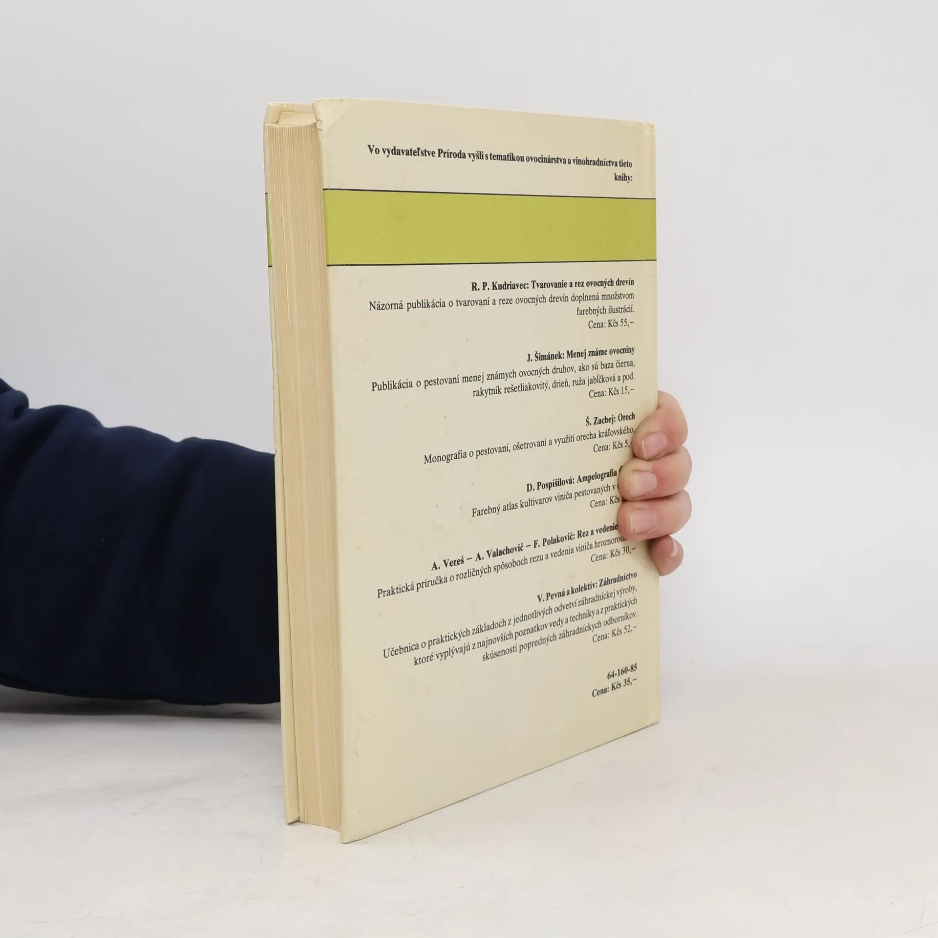 Kapitoly: Podmienky ovocinárskej výroby v ČSSR, Ovocné rastliny a prostredie, Biologické základy ovocinárstva, Technológia výroby ovocného sadiva, Pestovanie ovocných rastlín na trvalom stanovišti, Rez a tvarovanie ovocných rastlín, Agrotechnické opatrenia v ovocných výsadbách, Spôsoby ovocinárenia, Pestovanie netradičných druhov ovocia, Pestovateľská pomológia, Ekonomika a organizácia ovocinárstva. Cena knihy v čase vydania: 35 Kčs.