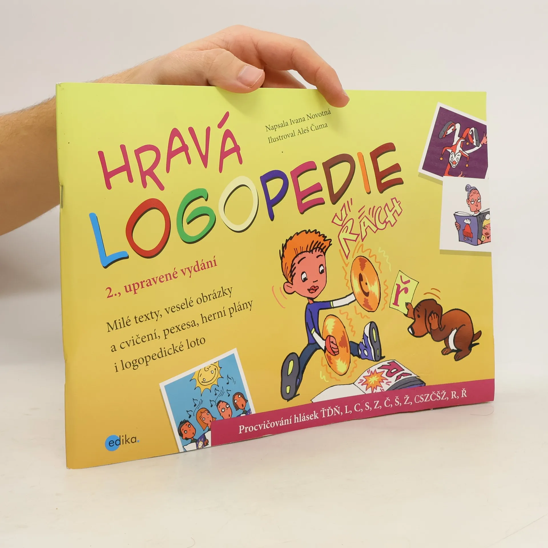 Dětská knížka poslouží k procvičení výslovnosti hlásek ŤĎŇ, L, C, S, Z, Č, Š, Ž, CSZČŠŽ, R, Ř. Hravou formou si zde děti procvičí jednotlivá slůvka i problematická slovní spojení. Uvnitř knihy najdeme návody, jak hlásky správně vyslovovat, spoustu materiálu k trénování a nechybí zde ani logopedické pexeso, loto a další hry. Oblíbené obrázkové čtení, přizpůsobené schopnostem malých čtenářů, vtáhne děti do příběhů o kamarádech, rodině a o zvířátkách.