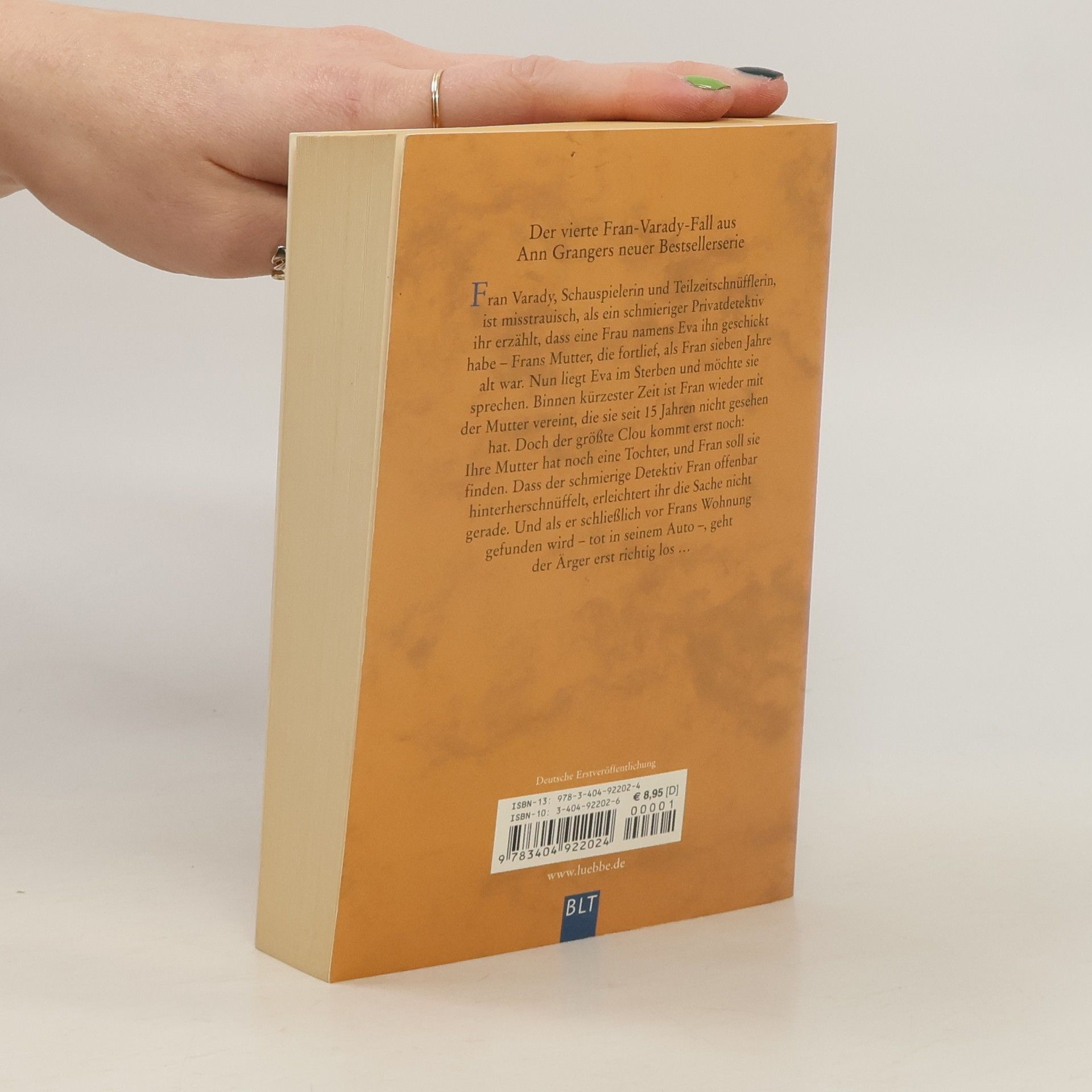 Fran Varady, Schauspielerin und Teilzeitschnüfflerin, ist misstrauisch, als ein schmieriger Privatdetektiv ihr erzählt, dass eine Frau namens Eva ihn geschickt habe - Frans Mutter, die fortlief, als Fran sieben Jahre alt war. Nun liegt Eva im Sterben und möchte sie sprechen. Binnen kürzester Zeit ist Fran wieder mit der Mutter vereint, die sie seit 15 Jahren nicht gesehen hat. Doch der größte Clou kommt erst noch: Ihre Mutter hat noch eine Tochter, und Fran soll sie finden. Dass der schmierige Detektiv Fran offenbar hinterherschnüffelt, erleichtert ihr die Sache nicht gerade. Und als er schließlich vor Frans Wohnung gefunden wird - tot in seinem Auto -, geht der Ärger erst richtig los ? Der vierte Fran-Varady-Fall.