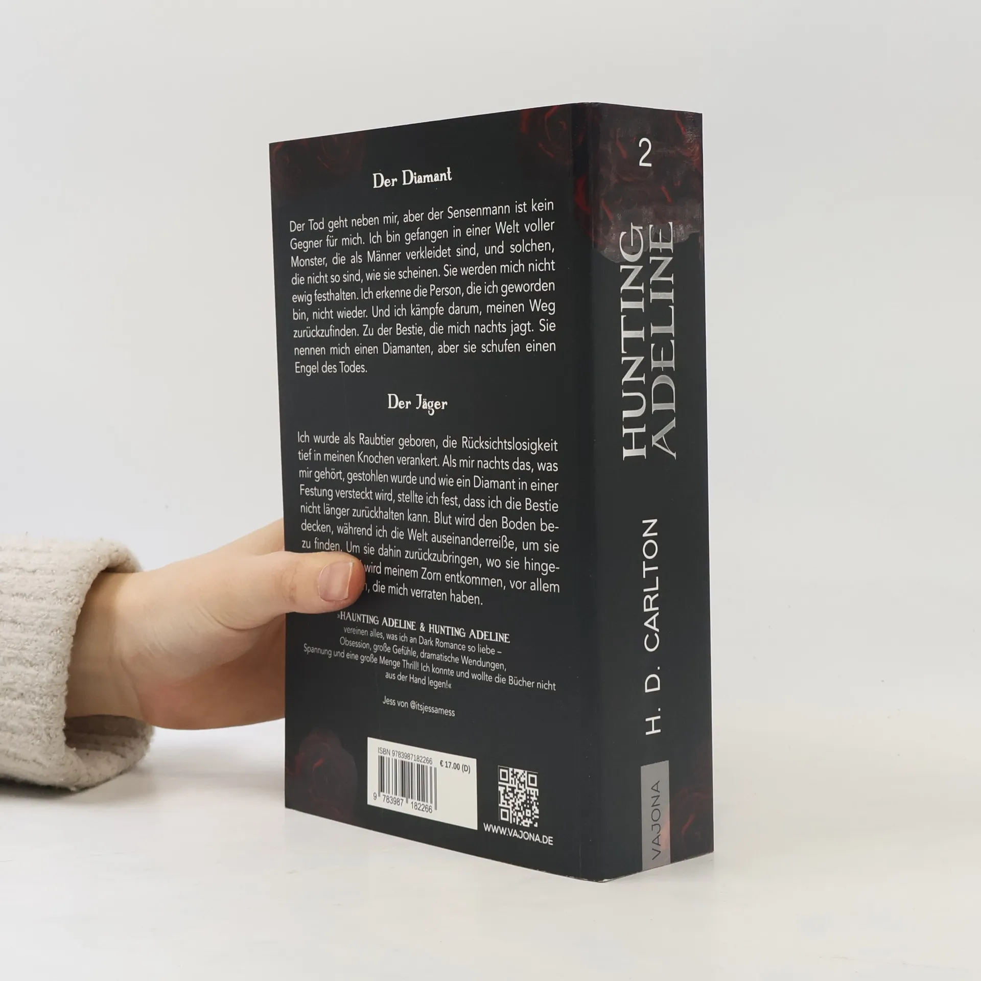 Der Diamant Der Tod geht neben mir, aber der Sensenmann ist kein Gegner für mich. Ich bin gefangen in einer Welt voller Monster, die als Männer verkleidet sind, und solchen, die nicht so sind, wie sie scheinen. Sie werden mich nicht ewig festhalten. Ich erkenne die Person, die ich geworden bin, nicht wieder. Und ich kämpfe darum, meinen Weg zurückzufinden. Zu der Bestie, die mich nachts jagt. Sie nennen mich einen Diamanten, aber sie schufen einen Engel des Todes. Der Jäger Ich wurde als Raubtier geboren, die Rücksichtslosigkeit tief in meinen Knochen verankert. Als mir nachts das, was mir gehört, gestohlen wurde und wie ein Diamant in einer Festung versteckt wird, stellte ich fest, dass ich die Bestie nicht länger zurückhalten kann. Blut wird den Boden bedecken, während ich die Welt auseinanderreiße, um sie zu finden. Um sie dahin zurückzubringen, wo sie hingehört. Niemand wird meinem Zorn entkommen, vor allem nicht diejenigen, die mich verraten haben. Der internationale Bestseller von H. D. Carlton! Leseempfehlung: ab 18 Jahre