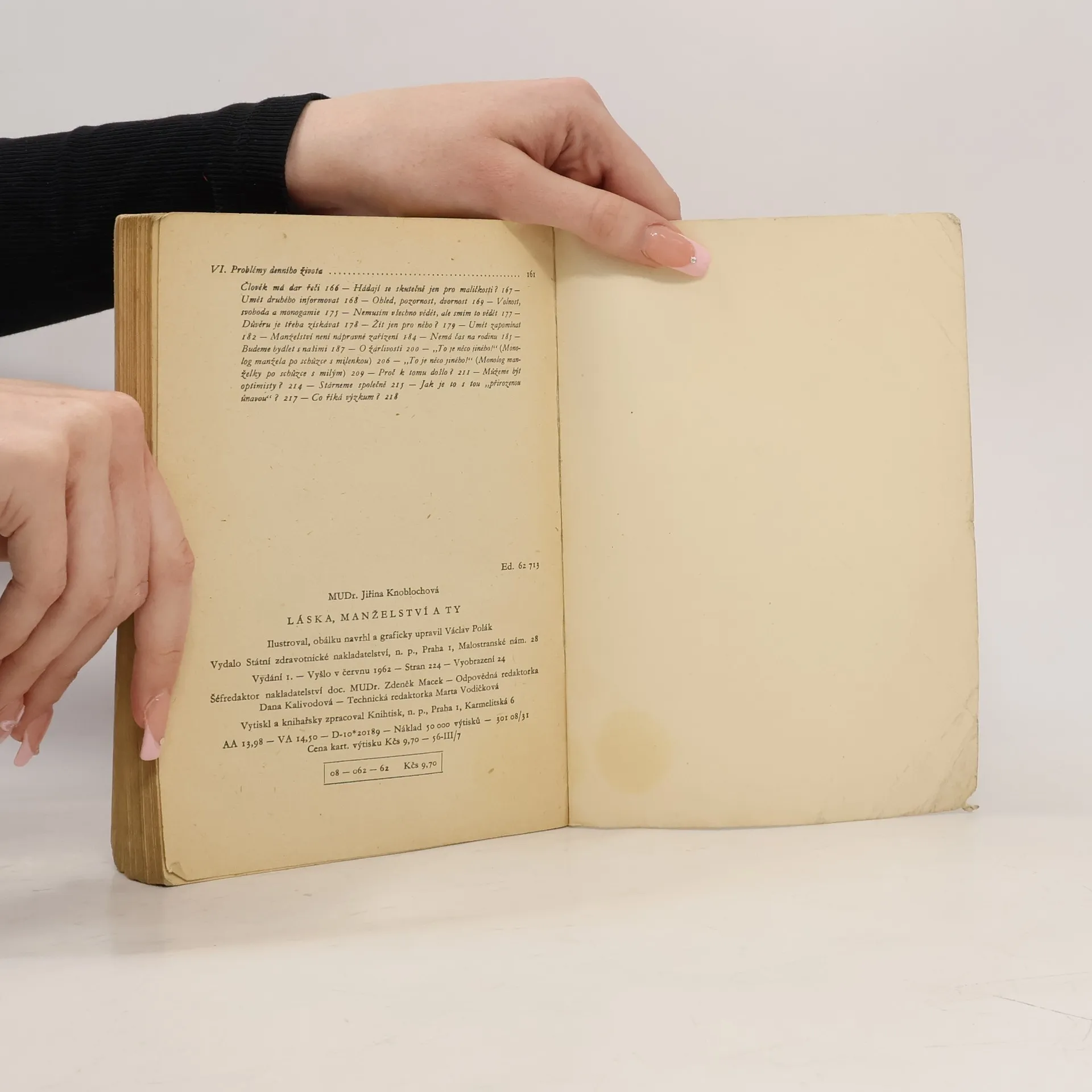 Autorka vychází ze svých mnohaletých zkušeností z výzkumu lidských vztahů v lásce a manželství a zabývá se důležitými otázkami výběru partnera pro život i společenskými a psychickými problémy manželskěho soužití. Na příkladech ze života rozebírá nejčastější příčiny napětía rozporů a upozorňuje na způsoby, jak tyto konflikty odstraňovat nebo je předcházet.