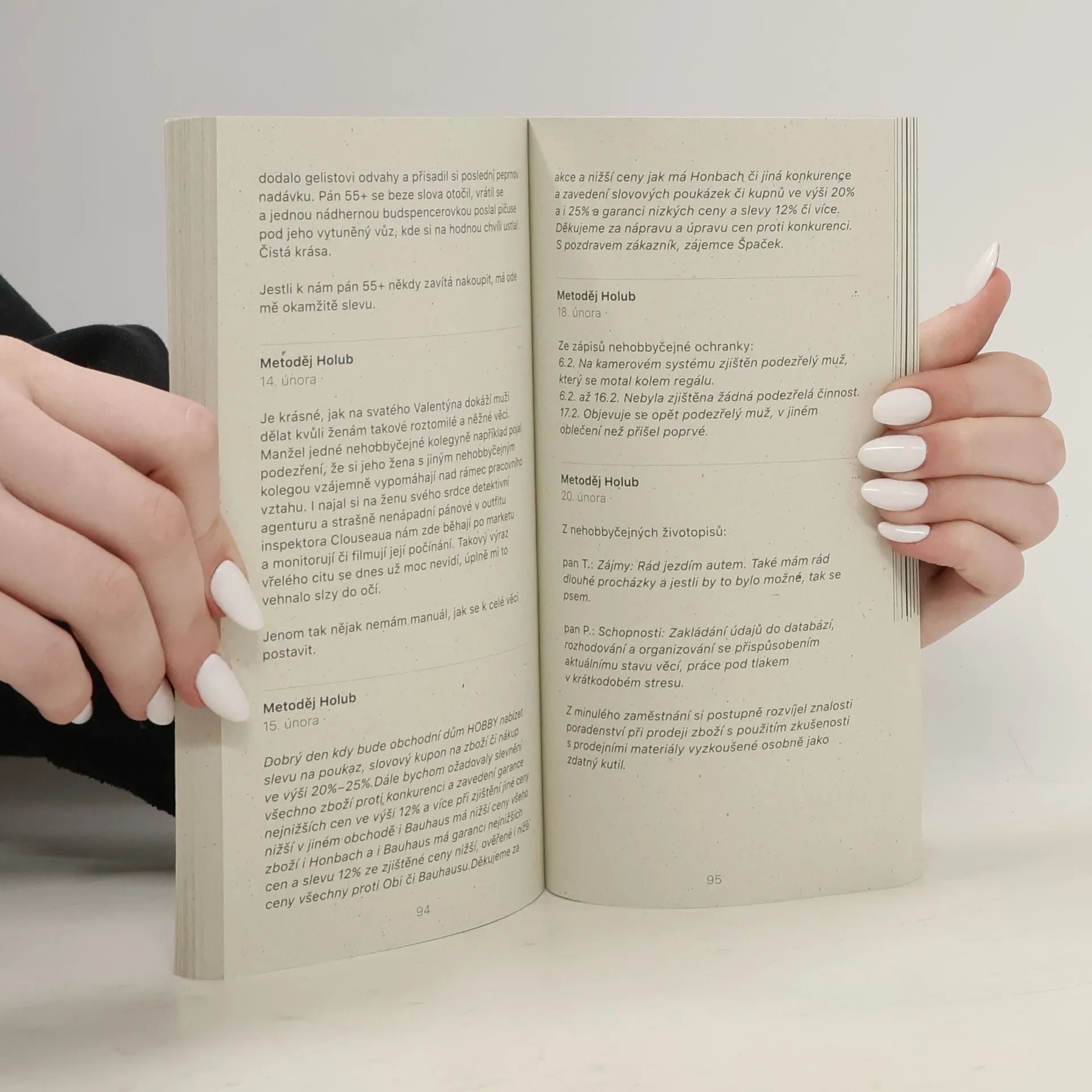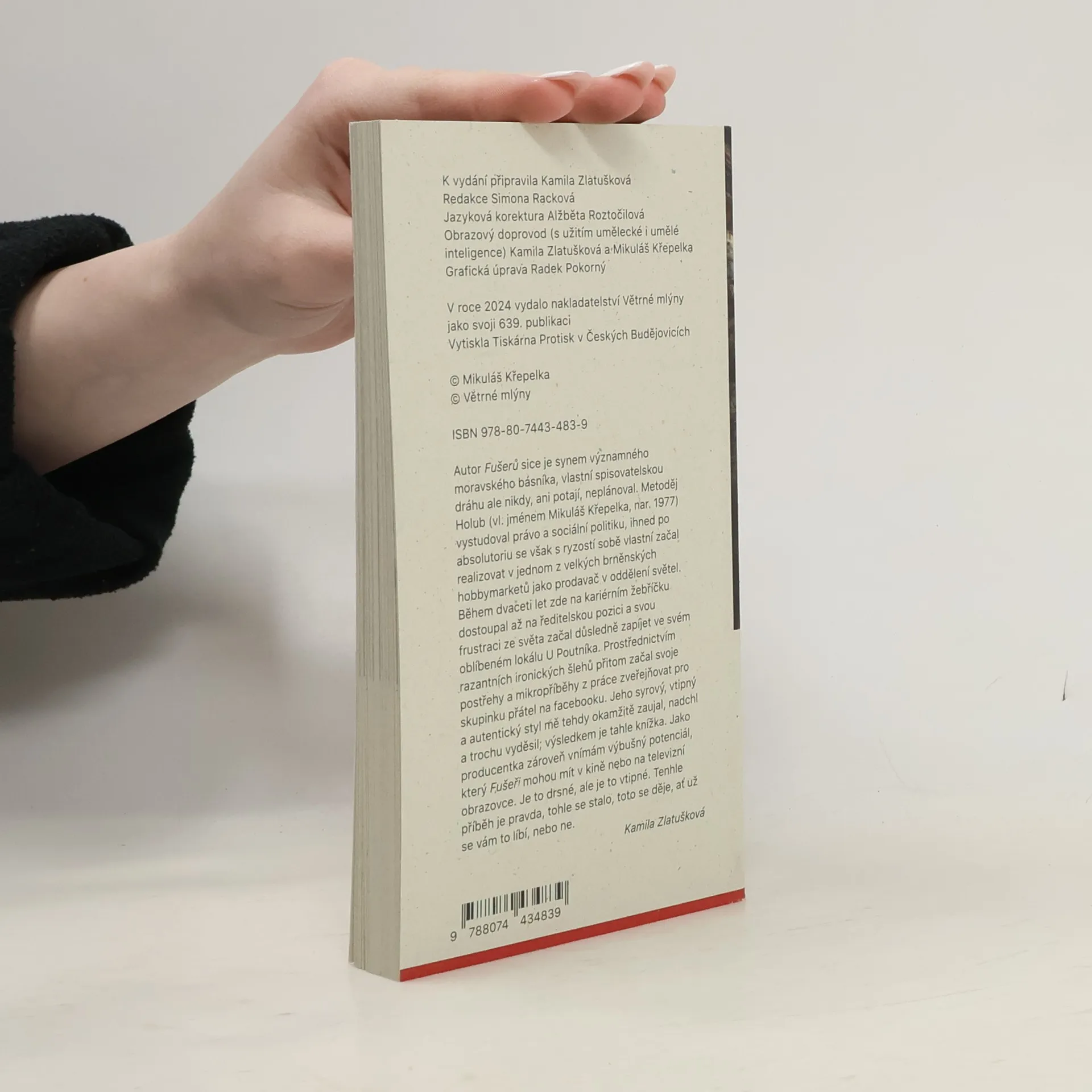Autor Fušerů sice je synem významného moravského básníka, vlastní spisovatelskou dráhu ale nikdy, ani potají, neplánoval. Metoděj Holub (vl. jménem Mikuláš Křepelka, nar. 1977) vystudoval právo a sociální politiku, ihned po absolutoriu se však s ryzostí sobě vlastní začal realizovat v jednom z velkých brněnských hobbymarketů jako prodavač v oddělení světel. Během dvaceti let zde na kariérním žebříčku dostoupal až na ředitelskou pozici a svou frustraci ze světa začal důsledně zapíjet ve svém oblíbeném lokálu U Poutníka. Prostřednictvím razantních ironických šlehů přitom začal svoje postřehy a mikropříběhy z práce zveřejňovat pro skupinku přátel na facebooku. Jeho syrový, vtipný a autentický styl mě tehdy okamžitě zaujal, nadchl a trochu vyděsil; výsledkem je tahle knížka. Jako producentka zároveň vnímám výbušný potenciál, který Fušeři mohou mít v kině nebo na televizní obrazovce. Je to drsné, ale je to vtipné. Tenhle příběh je pravda, tohle se stalo, toto se děje, ať už se vám to líbí, nebo ne.