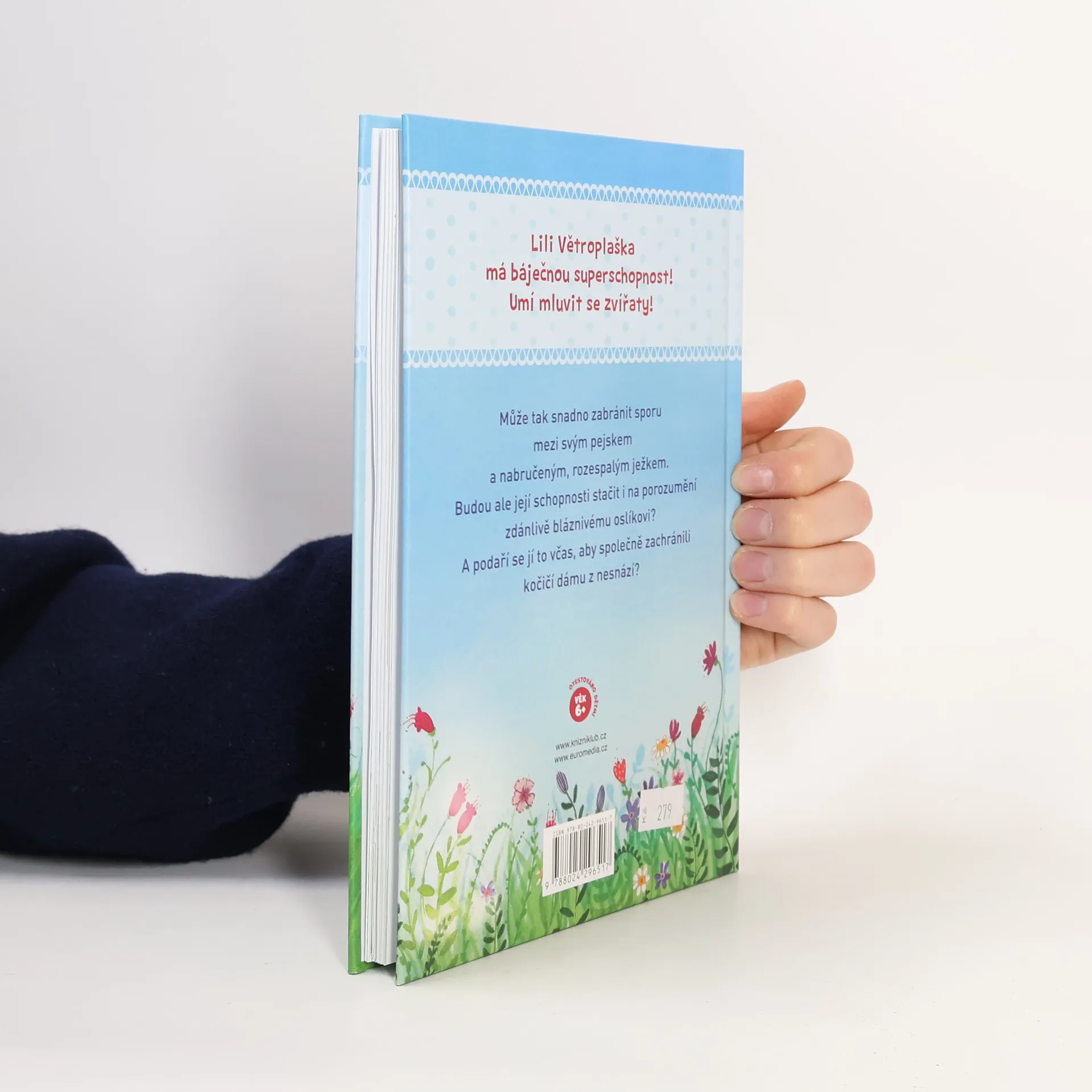 Lili Větroplaška má báječnou superschopnost – umí mluvit se zvířaty! A tak může snadno zabránit sporu mezi svým pejskem a nabručeným, rozespalým ježkem. Budou ale její schopnosti stačit i na porozumění zdánlivě bláznivému oslíkovi? A podaří se jí to včas, aby společně zachránili kočičí dámu z nesnází?