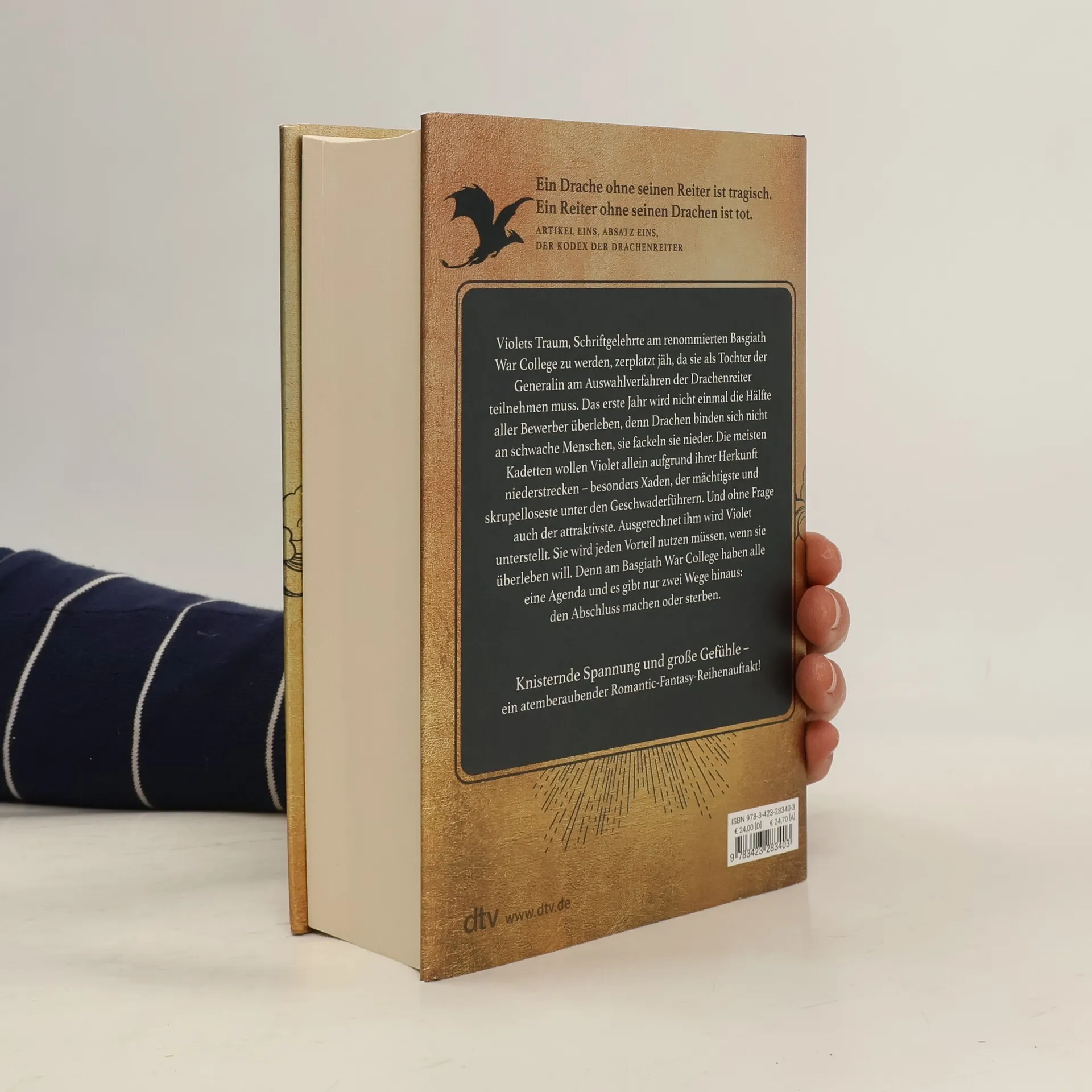Ein Drache ohne seinen Reiter ist tragisch. Ein Reiter ohne seinen Drachen ist tot. In wunderschöner, hochwertiger Ausstattung mit aufwendig veredeltem Schutzumschlag, gestaltetem Einband und farbigen Karten im Innenteil. Knisternde Spannung und große Gefühle – ein atemberaubender Romantic-Fantasy-Reihenauftakt! Perfekt für alle Fans von Jennifer L. Armentrout, Naomi Novik und Sarah J. Maas. Violets Traum, Schriftgelehrte am renommierten Basgiath War College zu werden, zerplatzt jäh, da sie als Tochter der Generalin am Auswahlverfahren der Drachenreiter teilnehmen muss. Das erste Jahr wird nicht einmal die Hälfte aller Bewerber überleben, denn Drachen binden keine schwachen Menschen, sie fackeln sie nieder. Die meisten Kadetten wollen Violet allein aufgrund ihrer Herkunft niederstrecken – besonders Xaden, der mächtigste und skrupelloseste unter den Geschwaderführern. Und ohne Frage auch der attraktivste. Ausgerechnet ihm wird Violet unterstellt. Sie wird jeden Vorteil nutzen müssen, wenn sie überleben will. Denn am Basgiath War College haben alle eine Agenda und es gibt nur zwei Wege hinaus: den Abschluss machen oder sterben.