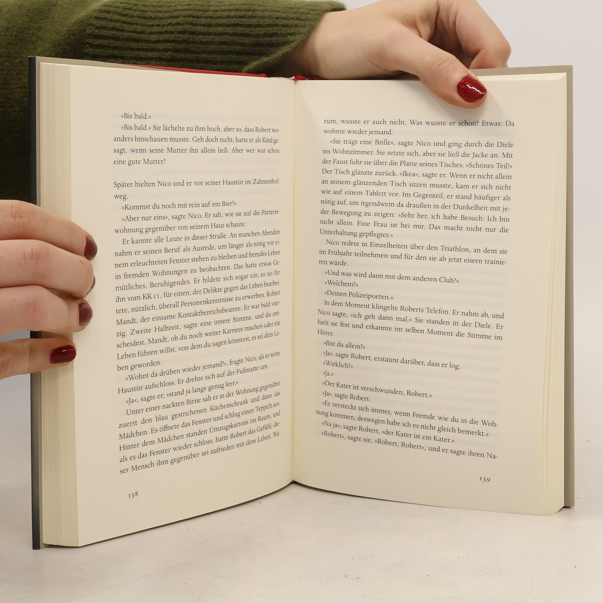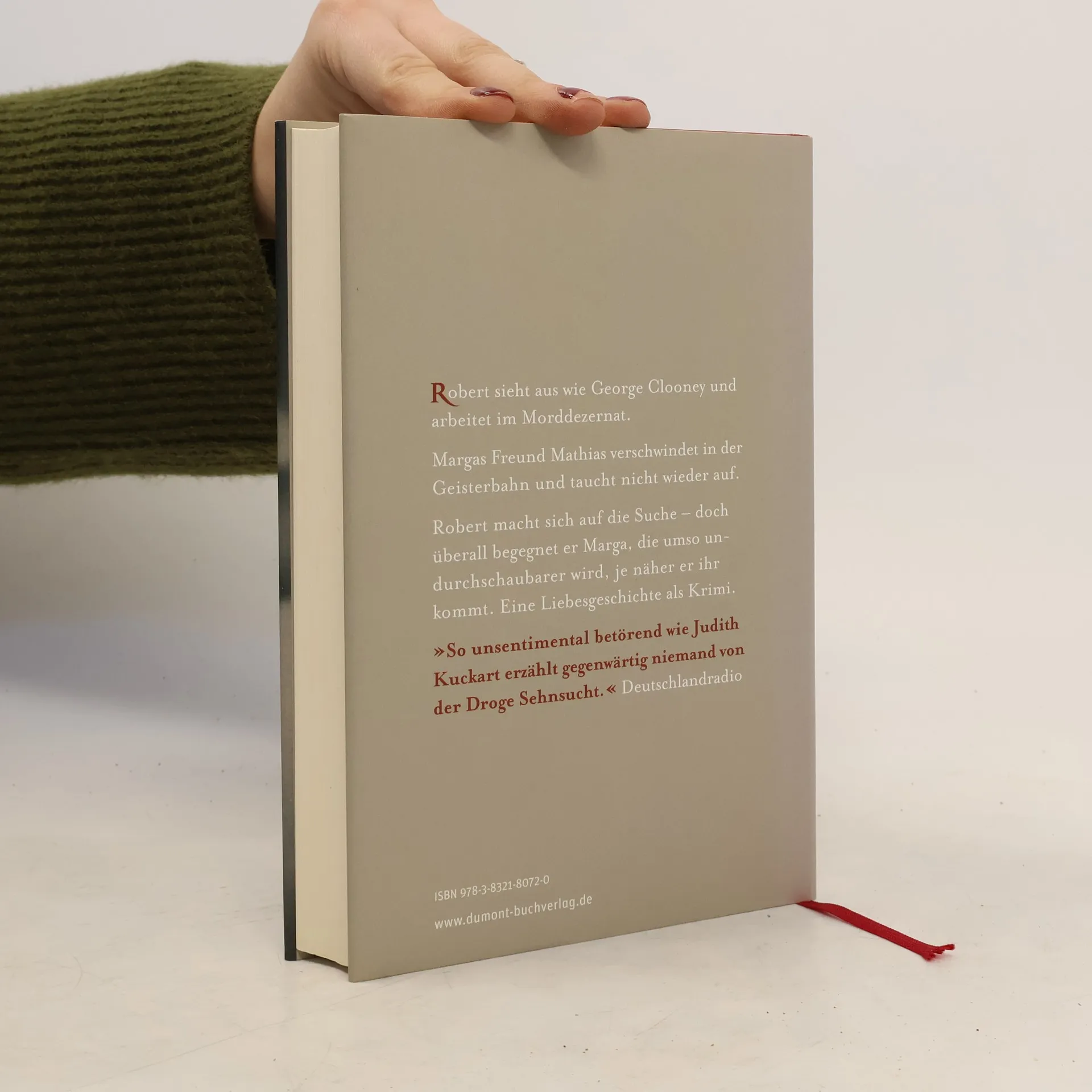 Robert ist 39, sieht aus wie George Clooney und arbeitet beim Morddezernat.Seine Frau hat er bei einer Verkehrskontrolle kennengelernt, aber die hat ihn gerade verlassen. Da kommt zu ihm aufs Kommissariat eine Frau, an der alles seltsam ist, nicht nur der Kragen ihres Mantels, der ihr wie ein Rhabarberblatt über die Schultern fällt. Marga Burg will eine Vermisstenanzeige aufgeben. Sie war mit ihrem Freund Mathias auf der Kirmes, er stieg allein in die Geisterbahn und kam nicht mehr heraus: "Er war einfach verschwunden, wie eine Faust verschwindet, wenn man die Hand öffnet." Robert macht sich zusammen mit seiner forschen Kollegin Nico auf die Suche. Doch überall begegnet er Marga, die umso undurchschaubarer wird, je näher er ihr kommt.