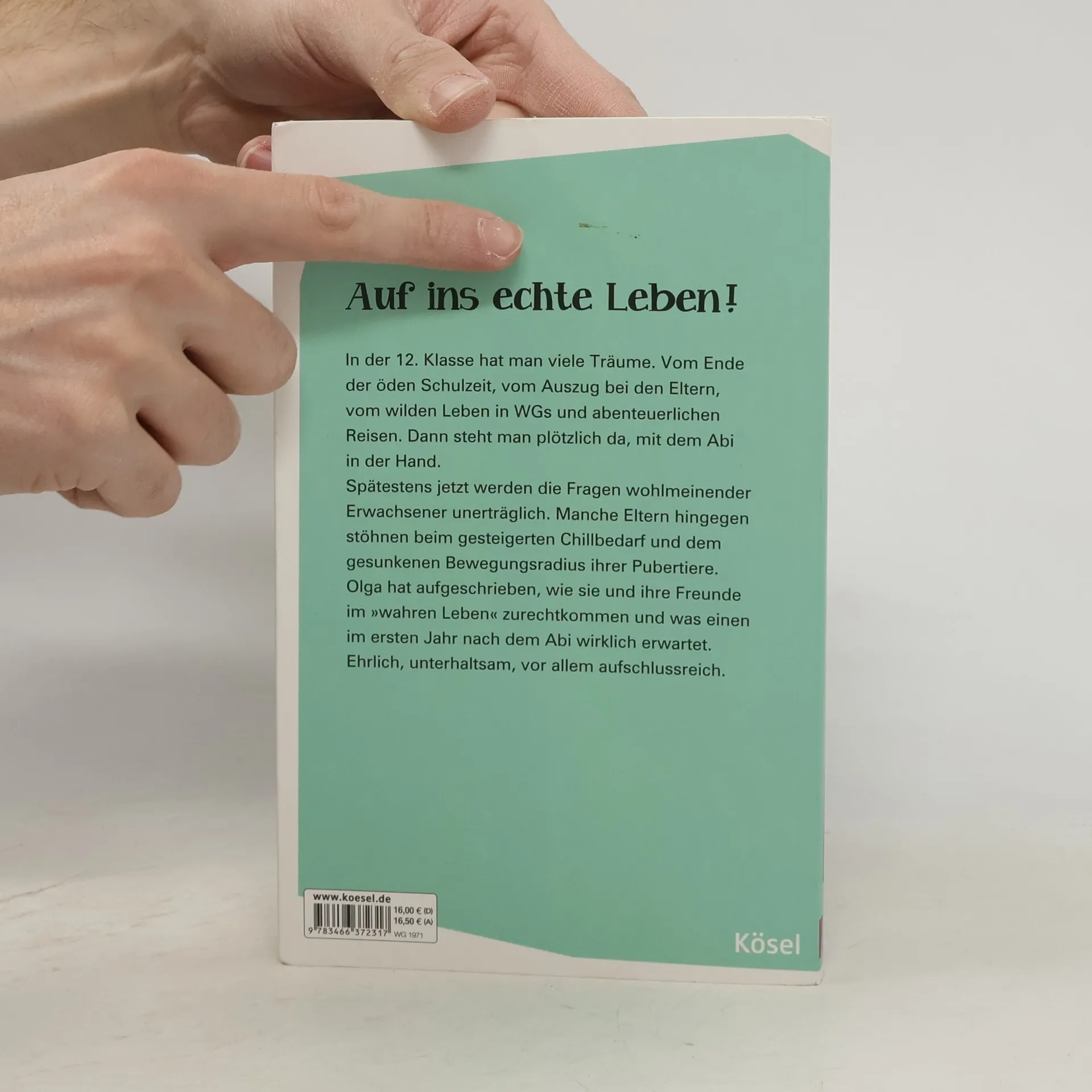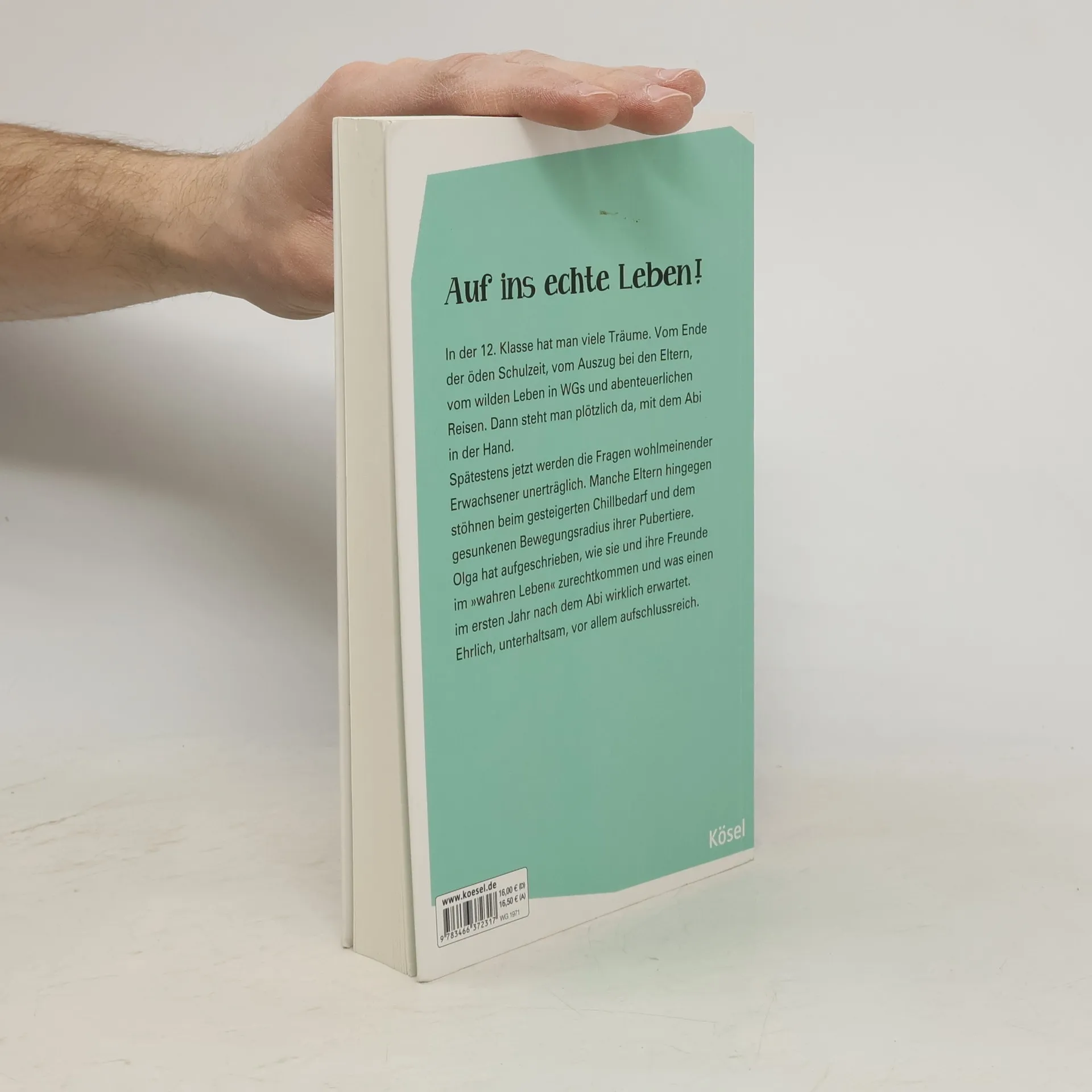 Endlich verstehen, was Abiturienten denken In der 12. Klasse hat man noch Träume. Vom Ende der öden Schulzeit, vom Auszug bei den Eltern, vom wilden Leben in WGs und Reisen. Dann steht man plötzlich da, mit dem Abi in der Hand. Spätestens jetzt werden die Fragen wohlmeinender Erwachsener unerträglich. Manche Eltern hingegen stöhnen beim gesteigerten Chillbedarf und dem gesunkenen Bewegungsradius ihrer Sprösslinge. Wie geht es weiter, was erwartet einen im ersten Jahr nach dem Abi? Das hat Olga aufgeschrieben und erzählt, wie sie und ihre Freunde im wahren Leben zurechtkommen. Ehrlich, unterhaltsam, vor allem aufschlussreich.