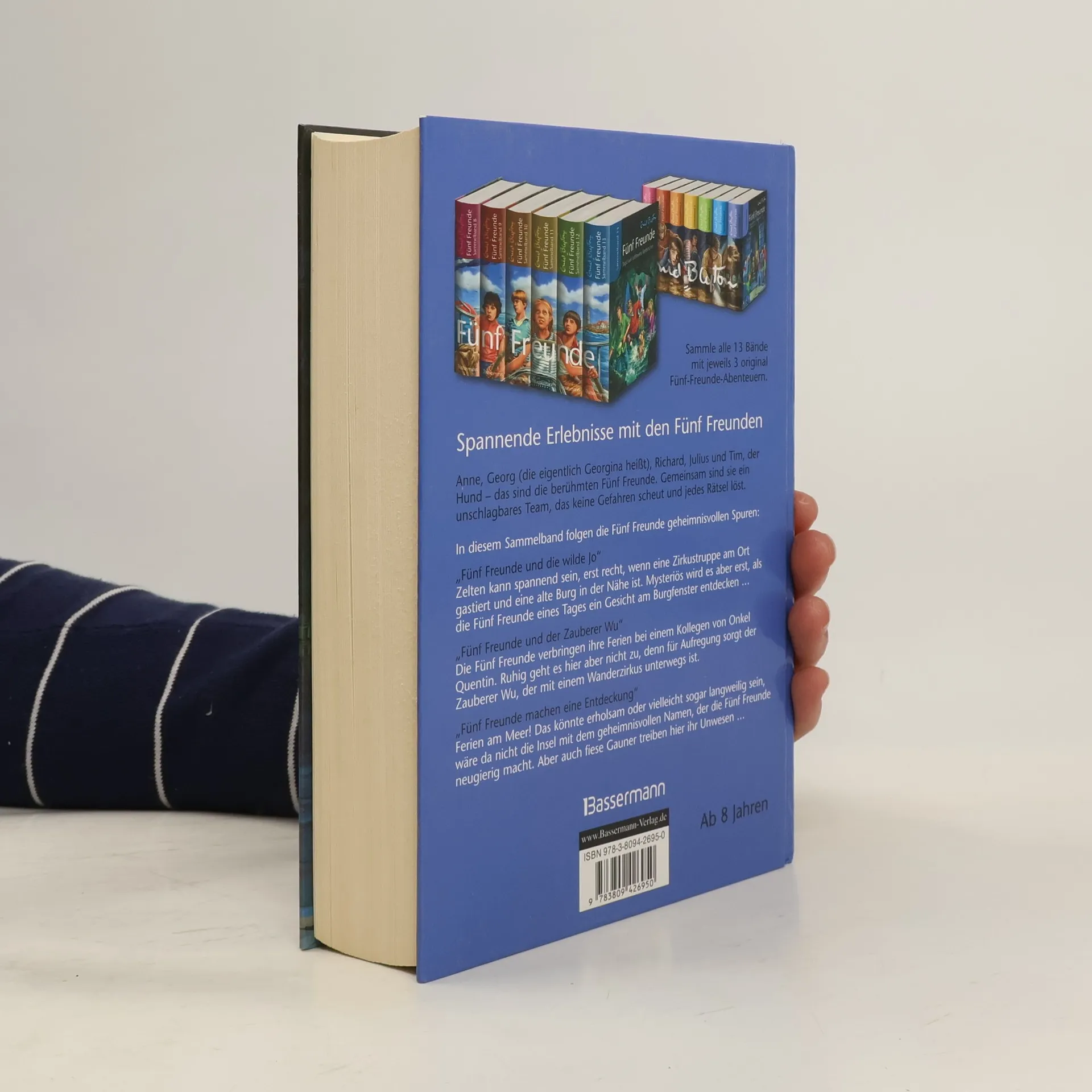 Die fünf Freunde entdecken Aufregendes Seit über 50 Jahren fiebern Kinder mit, wenn die Fünf Freunde Anne, Georg (die eigentlich Georgina heißt), Richard, Julius und der Hund Tim in alten Gemäuern, dunklen Höhlen oder unterirdischen Gängen verborgene Schätze aufspüren oder sich gegen finstere Gestalten behaupten. In diesem siebten Sammelband machen die Fünf Freunde aufregende Entdeckungen: - „Fünf Freunde und die wilde Jo“Zelten kann spannend sein, erst recht, wenn eine Zirkustruppe am Ort gastiert und eine alte Burg in der Nähe ist. Mysteriös wird es aber erst, als die Fünf Freunde eines Tages ein Gesicht am Burgfenster entdecken. - „Fünf Freunde und der Zauberer Wu“Die Fünf Freunde verbringen ihre Ferien bei einem Kollegen von Onkel Quentin. Ruhig geht es hier aber nicht zu, denn für Aufregung sorgt der Zauberer Wu, der mit einem Wanderzirkus unterwegs ist. - „Fünf Freunde machen eine Entdeckung“Ferien am Meer! Das könnte erholsam oder vielleicht sogar langweilig sein, wäre da nicht die Insel mit dem geheimnisvollen Namen, der die Fünf Freunde neugierig macht. Aber auch fiese Gauner treiben hier ihr Unwesen ...