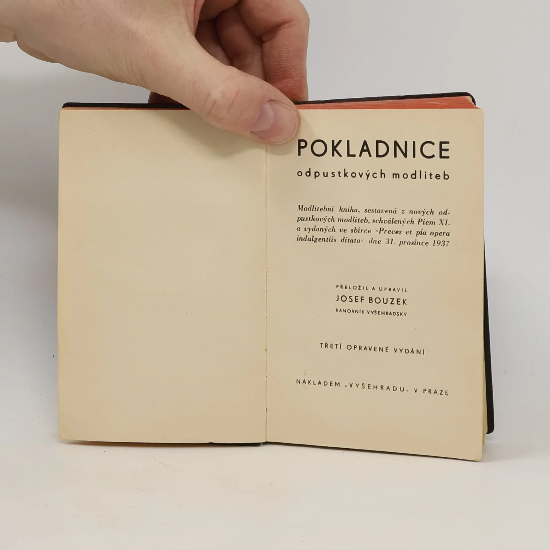 Modlitební kniha, sestavená z nových odpustkových modliteb, schválených Piem XI. a vydaných ve sbírce " PRECES ET PIA OPERA INDULGENTIIS DITATA " dne 31. prosince 1937