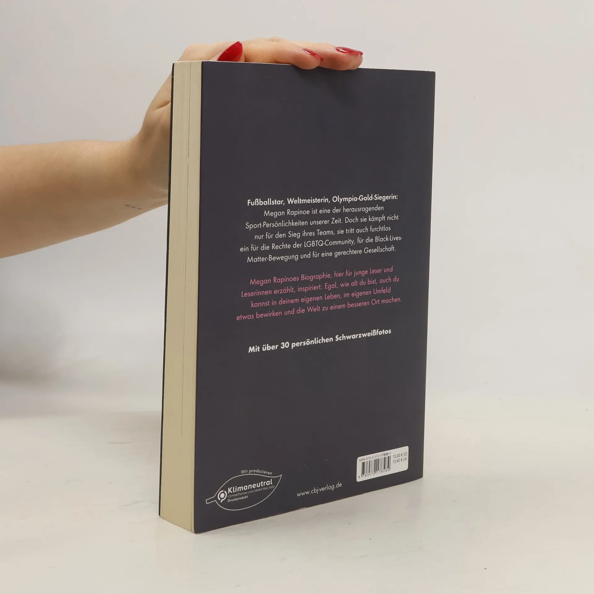 »An all die LGBTQIA+ Kids da draußen: Ich sehe euch. Ich höre euch. Und ich werde für euch kämpfen, mit jedem Atemzug.« Megan Rapinoe: Fußballstar, Weltmeisterin, Olympia-Gold-Siegerin und furchtlose Kämpferin für die Rechte der LGBTQ-Community und für die Black Lives Matter-Bewegung. Ihr solidarischer Kniefall für den Schwarzen Football-Spieler Colin Kaepernik in 2016 ist unvergessen, ebenso ihre Kampfansage gegen Donald Trump. Für ihre Vision von einer gerechteren Welt erhebt Rapinoe ihre Stimme unermüdlich gegen Rassismus und Ausgrenzung, gegen Unrecht und Ungerechtigkeit. Nahbar und lebendig erzählt sie, wie sehr ihr Leben immer schon von mutigen Entscheidungen und dem Verteidigen ihrer Werte geprägt war. Und sie inspiriert ihre Leser*innen, wie alt sie auch sein mögen, in diesem einen Leben im eigenen Umfeld etwas zu bewirken und die Welt zu einem besseren Ort zu machen. Fesselnd, inspirierend und auf Augenhöhe, erzählt von der Fußball-Ausnahmesportlerin Megan Rapinoe. Mit über 30 persönlichen Schwarzweißfotos.