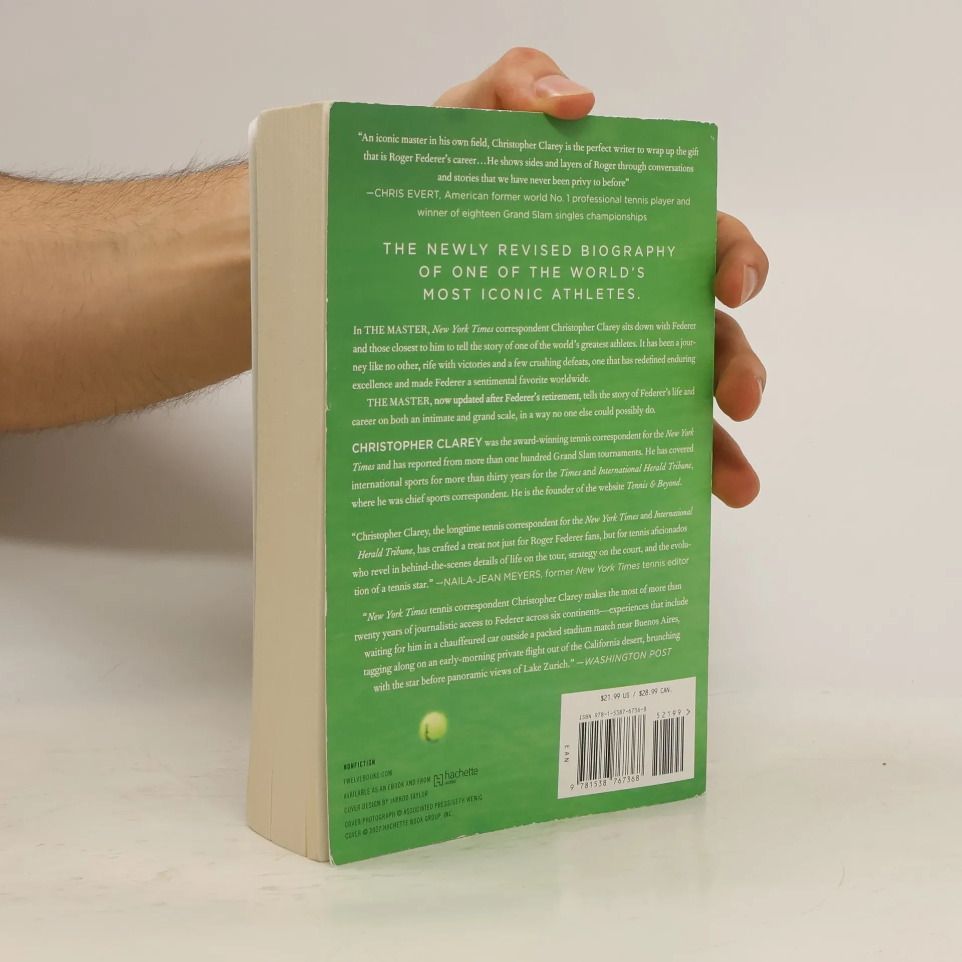 This New York Times bestselling biography tells the life story of the most iconic men's tennis player of the modern era. There have been other biographies of Roger Federer, but never one with this kind of access to the man himself, his support team, and the most prominent figures in the game, including such rivals as Rafael Nadal, Novak Djokovic, and Andy Roddick. In The Master, New York Times correspondent Christopher Clarey sits down with Federer and those closest to him to tell the story of the greatest player in men's tennis. Roger Federer has often made it look astonishingly easy through the decades: carving backhands, gliding to forehands, leaping for overheads and, in his most gravity-defying act, remaining high on a pedestal in a world of sports rightfully flooded with cynicism. But his path from temperamental, bleach-blond teenager with dubious style sense to one of the greatest, most self-possessed and elegant of competitors has been a long-running act of will, not destiny. He not only had a great gift. He had grit. Christopher Clarey, one of the top international sportswriters working today, has covered Federer since the beginning of his professional career. He was in Paris on the Suzanne Lenglen Court for Federer's first Grand Slam match and has interviewed him exclusively more than any other journalist since his rise to prominence. Here, Clarey focuses on the pivotal people, places, and moments in Federer's long and rich career: reporting from South Africa, South America, the Middle East, four Grand Slam tournaments, and Federer's native Switzerland. It has been a journey like no other player's, rife with victories and a few crushing defeats, one that has redefined enduring excellence and made Federer a sentimental favorite worldwide. The Master tells the story of Federer's life and career on both an intimate and grand scale, in a way no one else could possibly do.