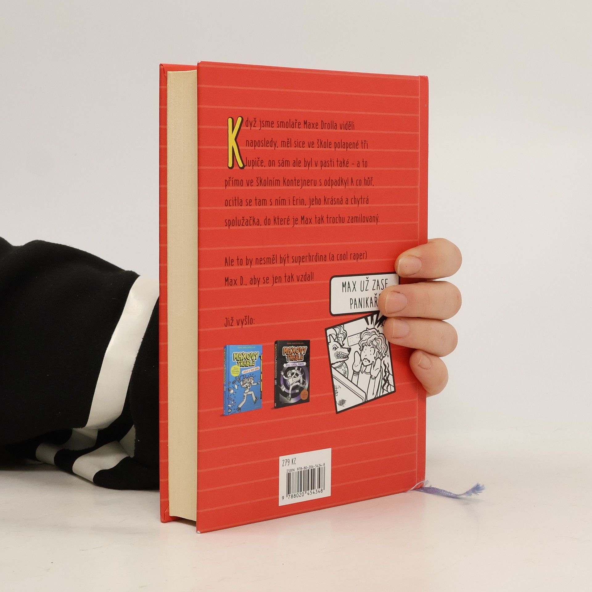 Když jsme Maxe Drolla viděli naposledy, měl sice ve škole polapené tři drzé lupiče, on sám ale byl v pasti také – a to přímo ve školním kontejneru s odpadky! A co hůř, ocitla se tam s ním i Erin, jeho krásná a chytrá spolužačka, do které je Max tak trochu zamilovaný. Ale to by nesměl být superhrdina (a cool raper) Max D., aby se jen tak vzdal! Ani uzavřený kontejner, ani policie, ba ani uprchlí lupiči ho nemůžou zastavit. Jenže znáte to: když to už vypadá, že jste ze všeho venku, vždycky se strhne něco dalšího, a to obvykle z té strany, odkud to nejméně čekáte. A tak bude Max Droll své superhrdinské schopnosti – a svou skoro geniální spolupracovnici – ještě hodně potřebovat…
