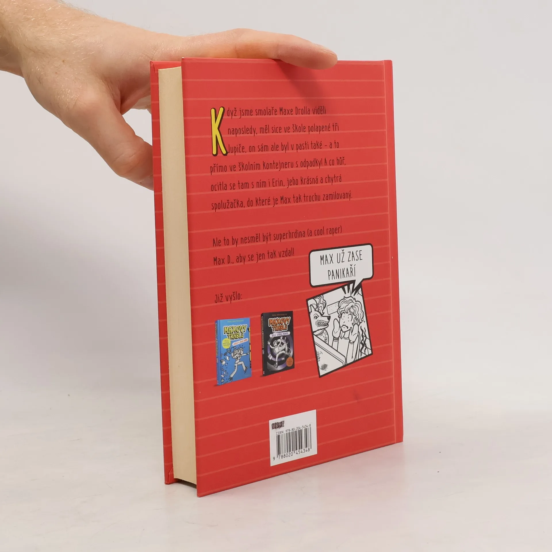 Když jsme Maxe Drolla viděli naposledy, měl sice ve škole polapené tři drzé lupiče, on sám ale byl v pasti také – a to přímo ve školním kontejneru s odpadky! A co hůř, ocitla se tam s ním i Erin, jeho krásná a chytrá spolužačka, do které je Max tak trochu zamilovaný. Ale to by nesměl být superhrdina (a cool raper) Max D., aby se jen tak vzdal! Ani uzavřený kontejner, ani policie, ba ani uprchlí lupiči ho nemůžou zastavit. Jenže znáte to: když to už vypadá, že jste ze všeho venku, vždycky se strhne něco dalšího, a to obvykle z té strany, odkud to nejméně čekáte. A tak bude Max Droll své superhrdinské schopnosti – a svou skoro geniální spolupracovnici – ještě hodně potřebovat…