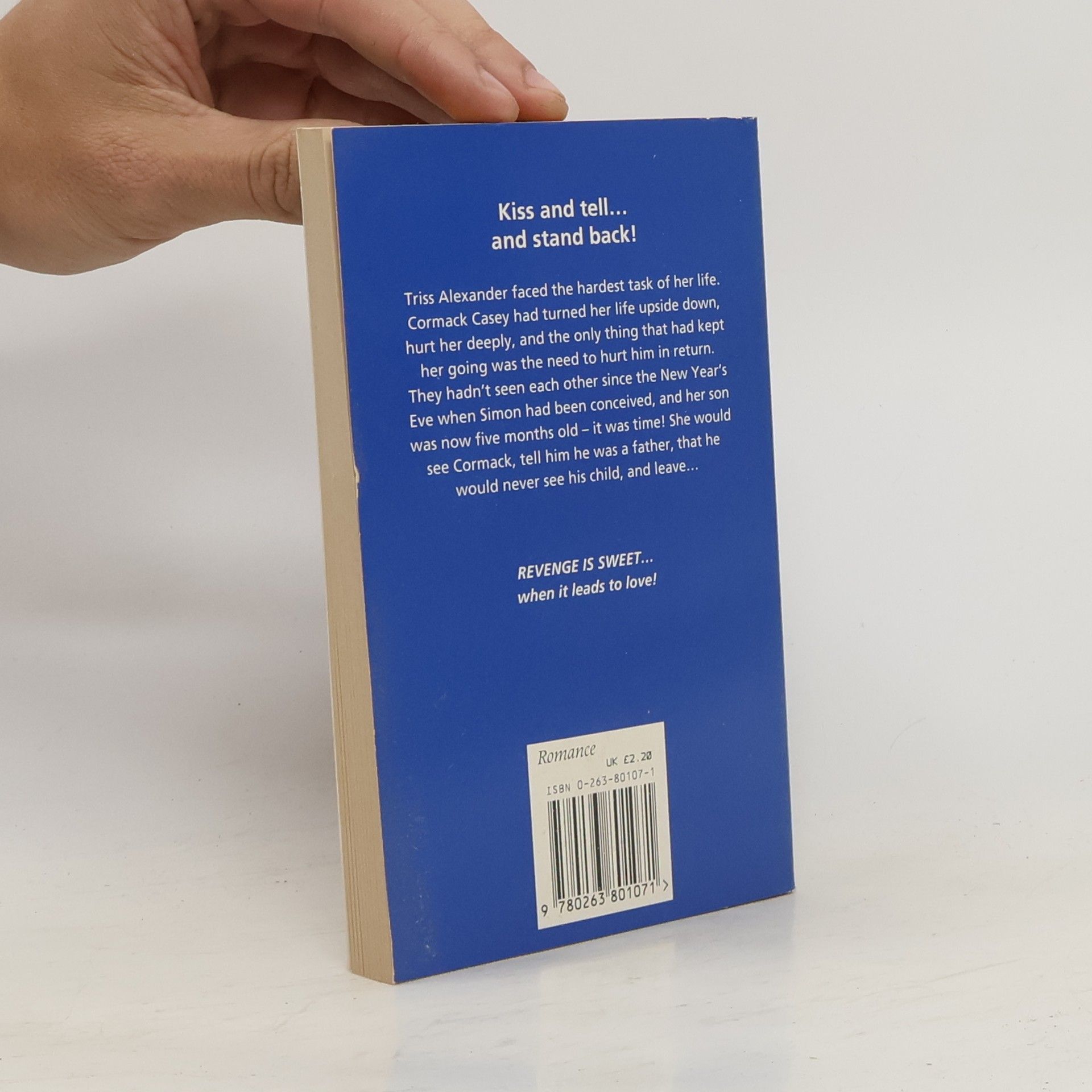Provoking Cormack had never been a good idea in the past -- how would he react now? Triss Alexander faced the hardest task of her life. Cormack Casey had turned her life upside down, hurt her deeply, and the only thing that had kept her going was the need to hurt him in return. They hadn't seen each other since the New Year's Eve when Simon had been conceived, and her son was now six months old--it was time! She would see Cormack, tell him he was a father, that he would never see his child ...and then she'd leave .... REVENGE IS SWEET when it leads to love