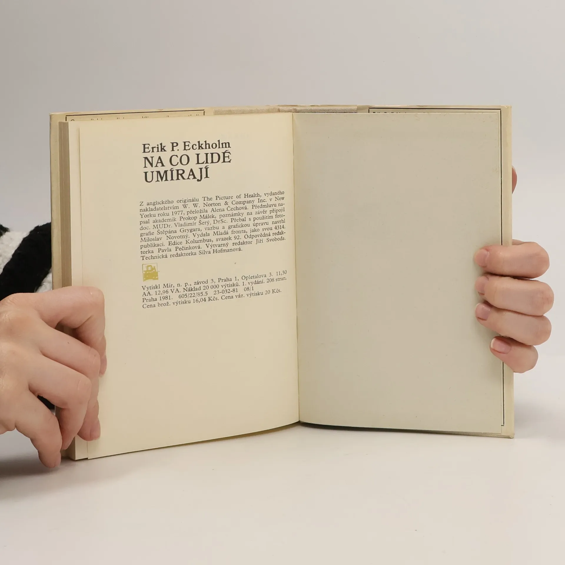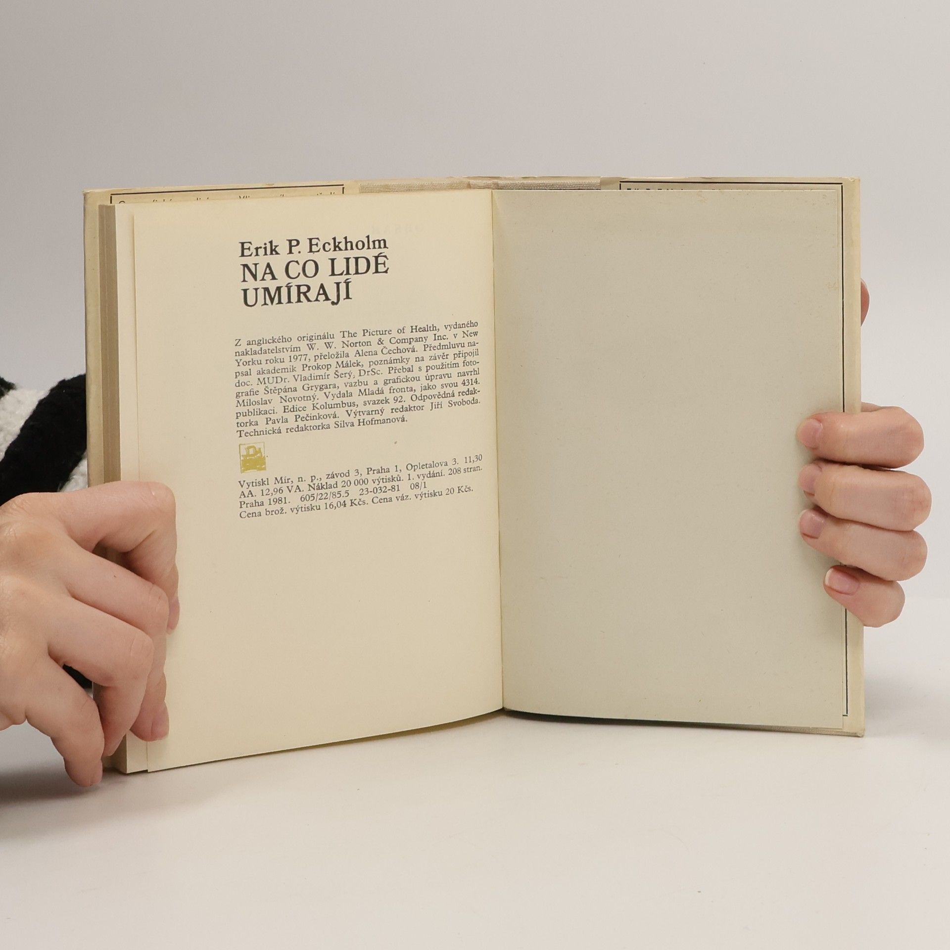 Erik P. Eckholm: Na co lidé umírají - zdroje chorob v zevním prostředí. Kniha napsaná ve spolupráci s orgány programu pro zevní prostředí OSN (UNEF) uvádí základní otázky lidského zdraví na základě zevrubných odborných informací a údajů z celého světa. Zvláštní zájem věnuje problematice rozvojových zemí, kde je situace nejtíživější. Má k dispozici statistiky z roku 1977 a na jednotlivých kapitolách spolupracoval autor s celou řadou odborníků prakticky z celého světa.