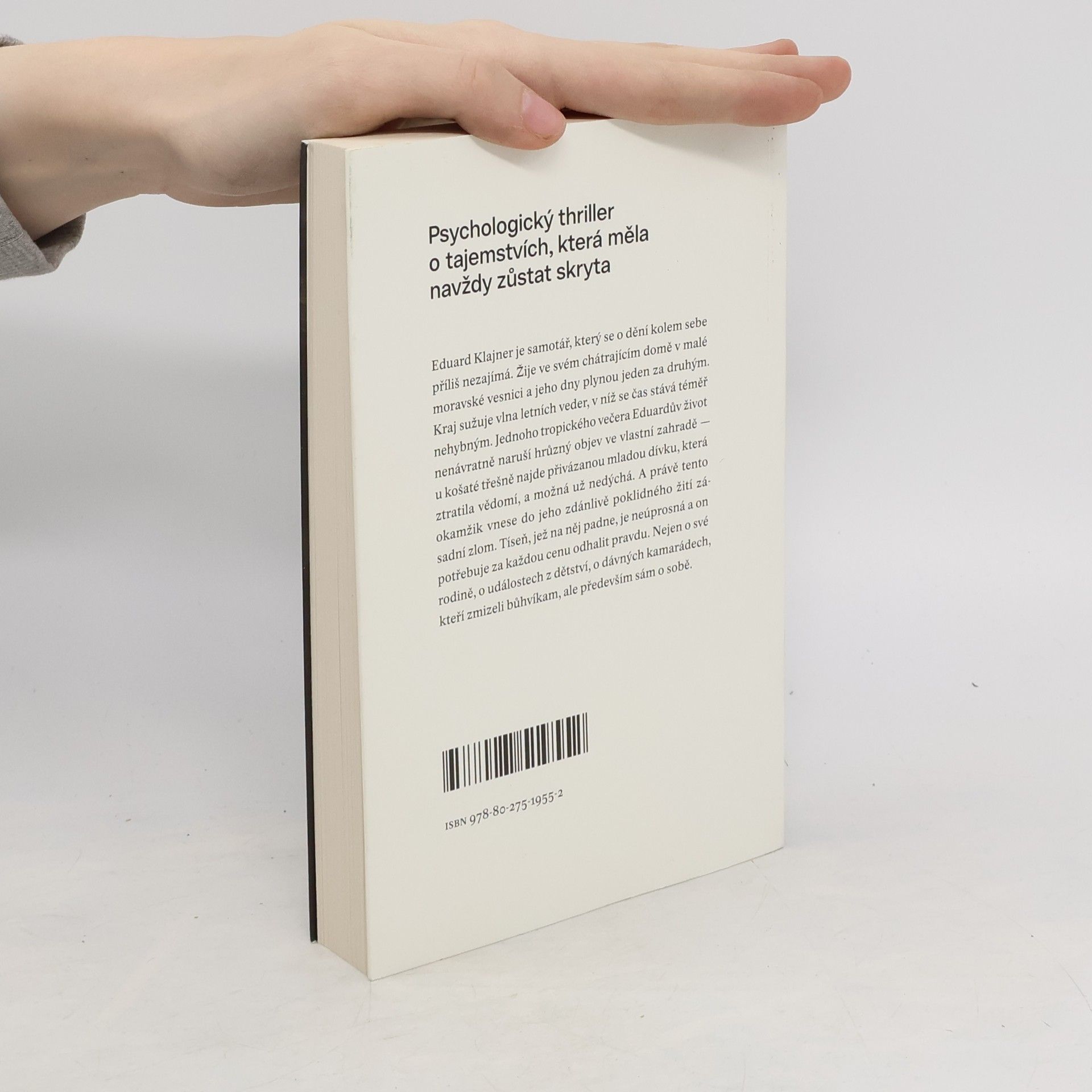 Psychologický thriller o tajemstvích, která měla zůstat navždy skryta. Samotářský Eduard Klajner tráví dlouhé měsíce ve svém chátrajícím domě v malé moravské vesnici a o dění kolem sebe se příliš nezajímá. Jeho dny plynou jeden za druhým, zatímco horka jsou stále horší a čas se v nich stává téměř nehybným. Vlnu letních veder nenávratně naruší hrůzný objev v Eduardově zahradě, u starého stromu najde přivázanou mladou dívku, která ztratila vědomí a možná už nedýchá. A právě tento okamžik se stává v jeho zdánlivě poklidném životě zásadním zlomem. Tíseň, která na jeho život padá, je neúprosná a on potřebuje za každou cenu odhalit pravdu. Nejen o své rodině, o událostech z dětství, o dávných kamarádech, kteří zmizeli bůhvíkam, ale především sám o sobě. A potom učinit zásadní rozhodnutí. Už nikdy nebude tak nesnesitelné vedro jako letos.