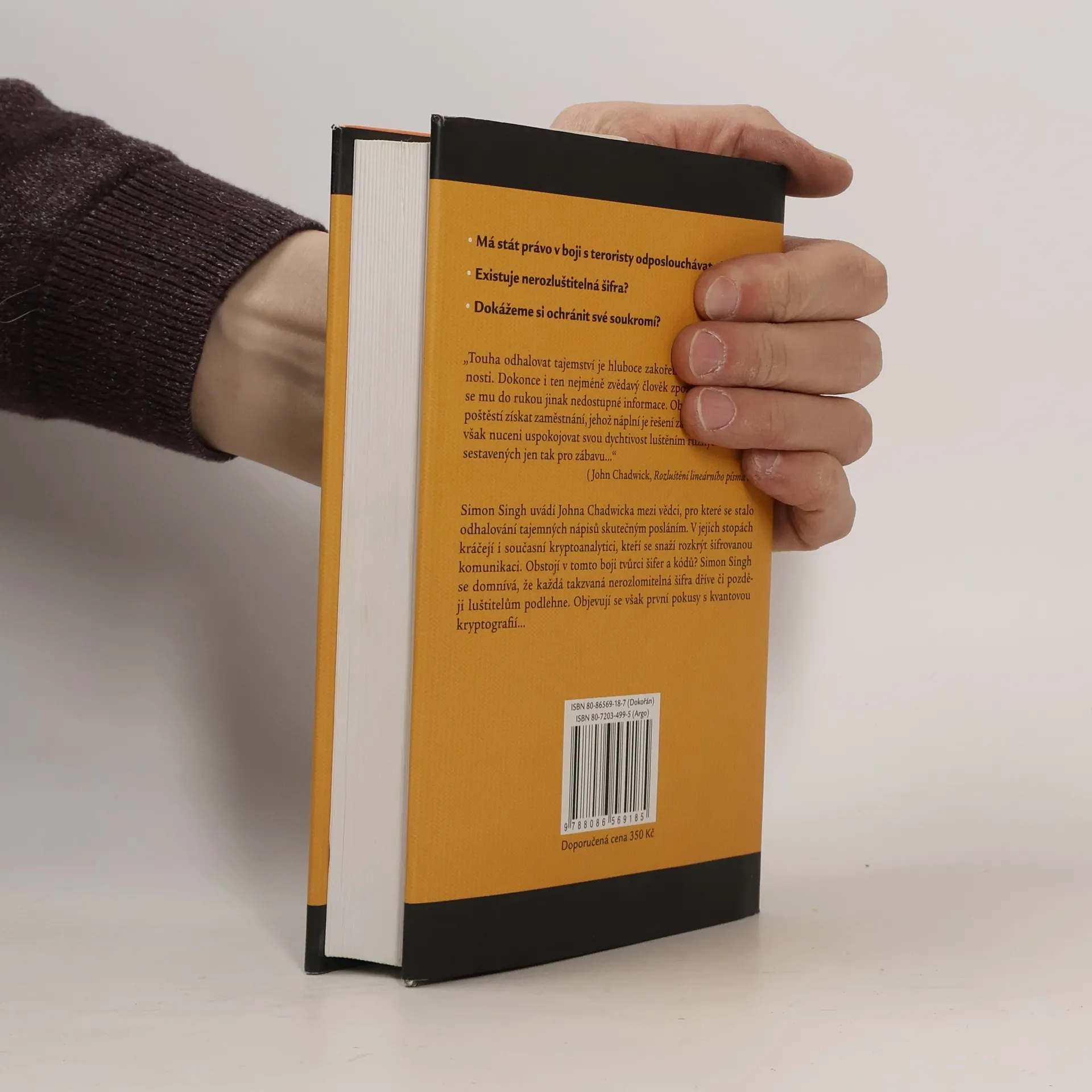 Tajná komunikace od starého Egypta po kvantovou kryptografii. Téma tajemných kódů a šifer – „nekonečný souboj mezi tvůrci a luštiteli“ – láká od nejstarších dob. V politice a válečnictví hrála utajená komunikace často klíčovou roli, její význam v informačním věku ještě stoupá a dotýká se zájmů skutečně každého jednotlivce a to zejména ve svobodné společnosti. Singhova kniha mapuje historii šifrování i současný stav kryptologie a podrobně zpracovává klíčová a nejzajímavější témata. Díky přístupnému stylu a jasnému vysvětlení řady složitých šifrovacích systémů a algoritmů lze knihu doporučit každému zájemci o tuto nesporně zajímavou oblast lidské činnosti.