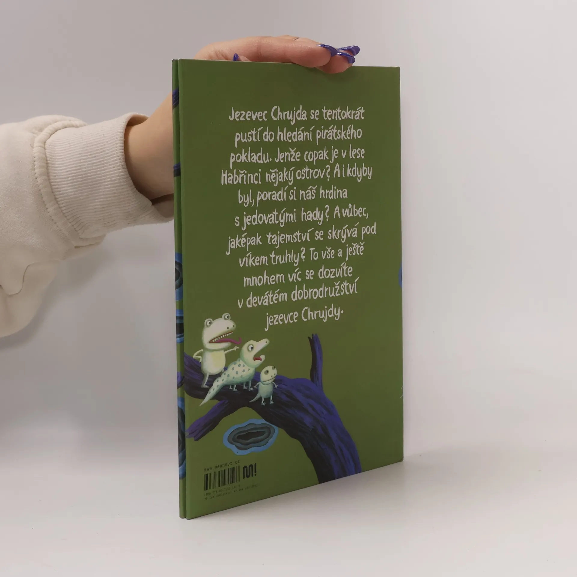 Jezevec Chrujda se tentokrát pustí do hledání pirátského pokladu. Jenže copak je v lese Habřinci nějaký ostrov? A i kdyby byl, poradí si náš hrdina s jedovatými hady? A vůbec, jaképak tajemství se skrývá pod víkem truhly? Nakladatelská anotace. Kráceno.