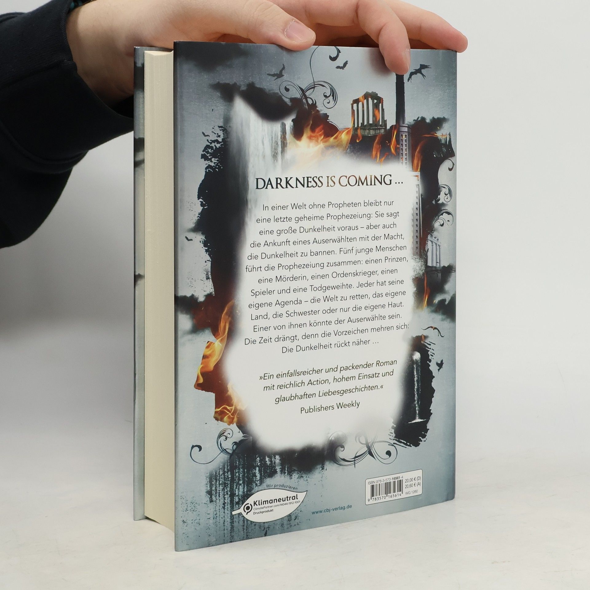 Fünf Schicksale, eine Prophezeiung, ein Auserwählter: Nur einer kann die Welt retten – oder in den Untergang stürzen ... Einst lenkten sieben Propheten die Welt, doch sie sind längst verschwunden. Geblieben ist nur ihre letzte, geheime Prophezeiung. Sie sagt ein Zeitalter der Dunkelheit voraus und die Geburt eines neuen Propheten, der die Welt entweder retten oder ihr Untergang sein wird. Fünf junge Menschen führt die Prophezeiung zusammen: einen Prinzen in der Verbannung, eine Mörderin, die ihre Opfer mit der »Blassen Hand« zeichnet, einen getreuen Paladin zwischen Pflichtgefühl und Herz, einen Spieler mit der Gabe, alles und jeden zu finden, und ein sterbendes Mädchen, das kurz davor ist, aufzugeben. Einer von ihnen hat die Macht, die Welt zu retten – oder sie in den Untergang zu stürzen. Alle Bände der „Age of Darkness“-Reihe: The Age of Darkness – Feuer über Nasira (Band 01) The Age of Darkness – Schatten über Behesda (Band 02) The Age of Darkness – Das Ende der Welt (Band 03)